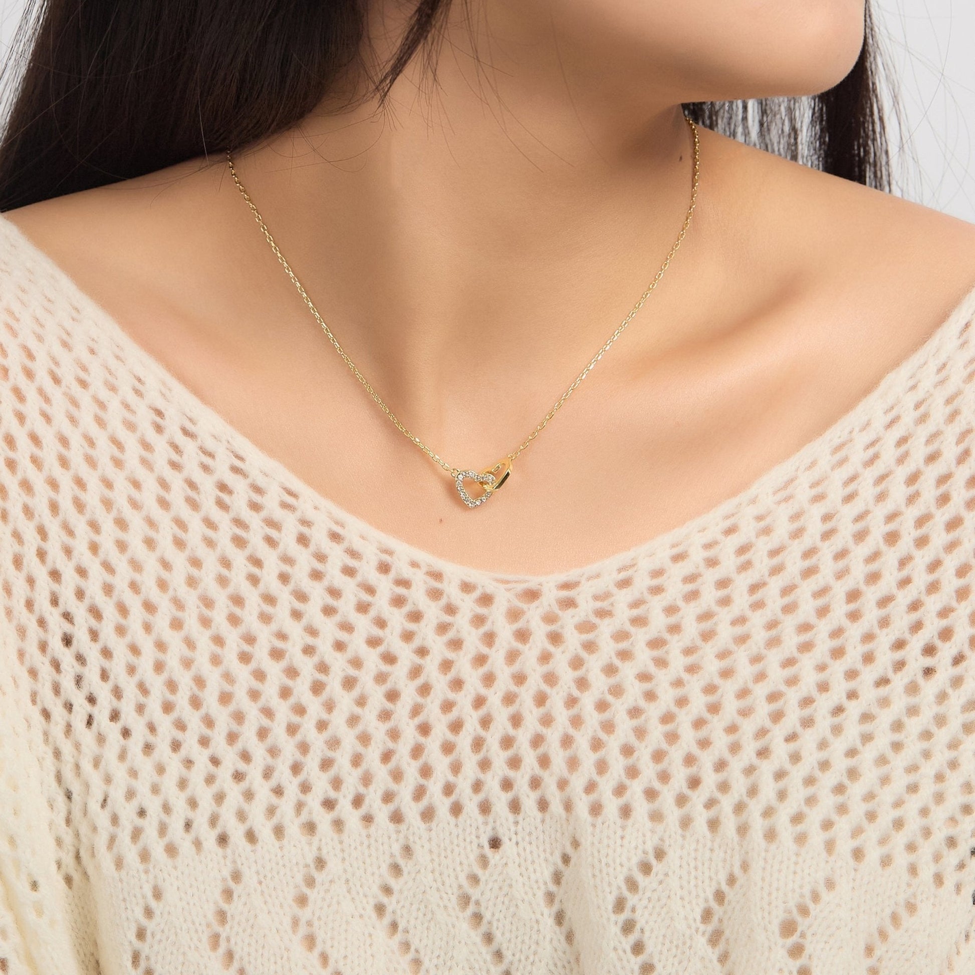 18k Gold Plated Heart Link Necklace Created with Zircondia® Crystals