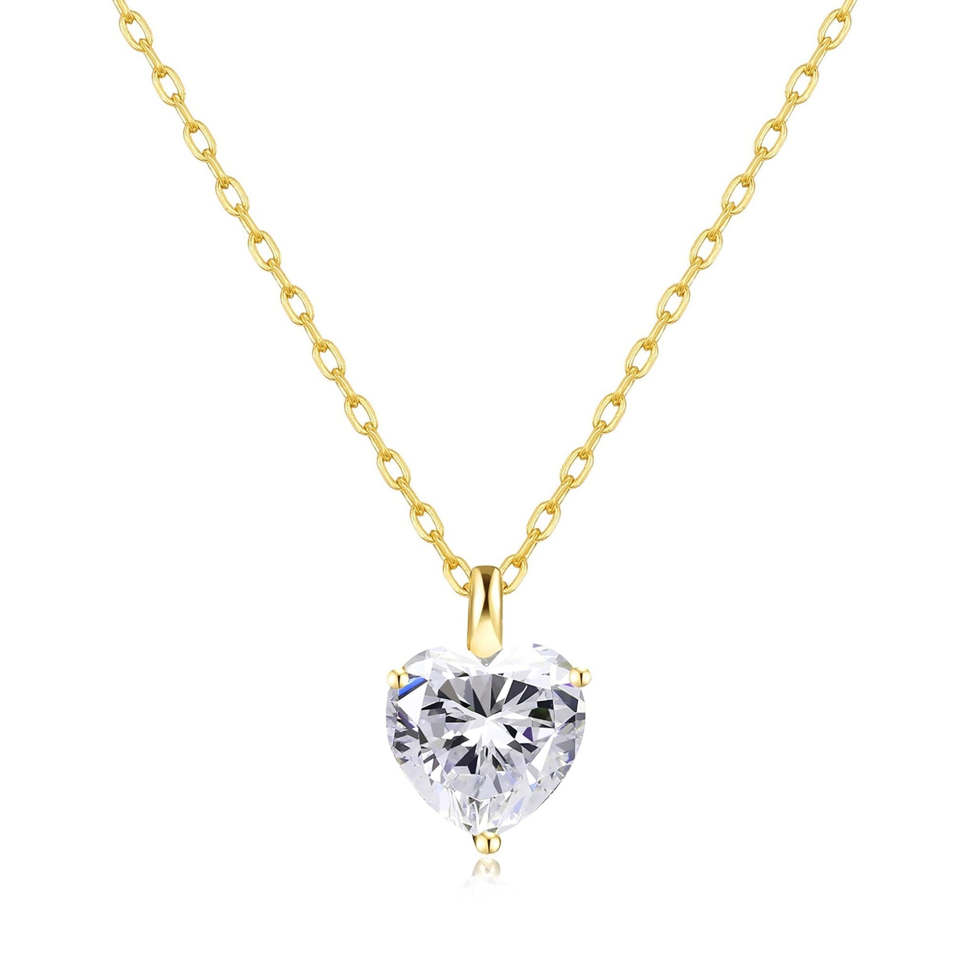 Gold Plated Heart Solitaire Necklace Created with Zircondia® Crystals