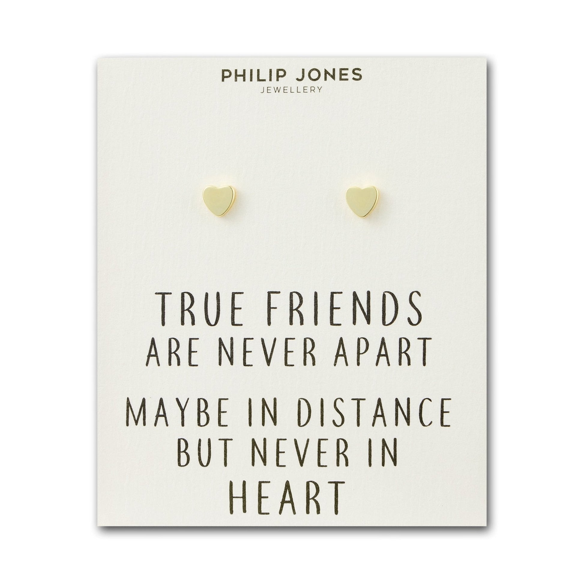 These Gold Plated Heart Stud Earrings by Philip Jones are a stunning and hypoallergenic addition to any jewelry collection. Their high polished finish adds a touch of elegance, while the included quote card in a gift pouch makes them the perfect thoughtful gift for a loved one.
