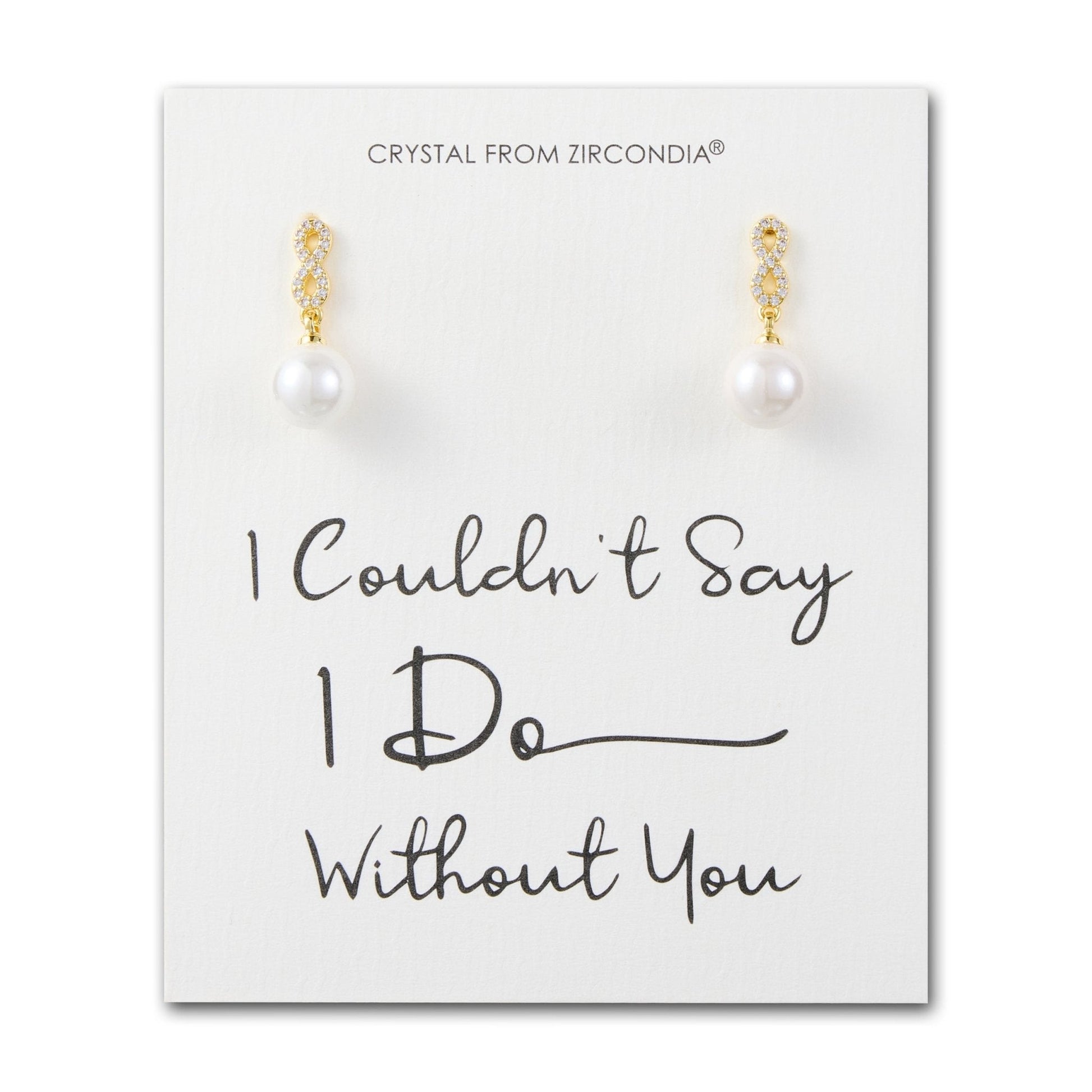 Gold Plated I Couldn't Say I Do Without You Infinity Pearl Drop Bridal Earrings with Zircondia® Crystals