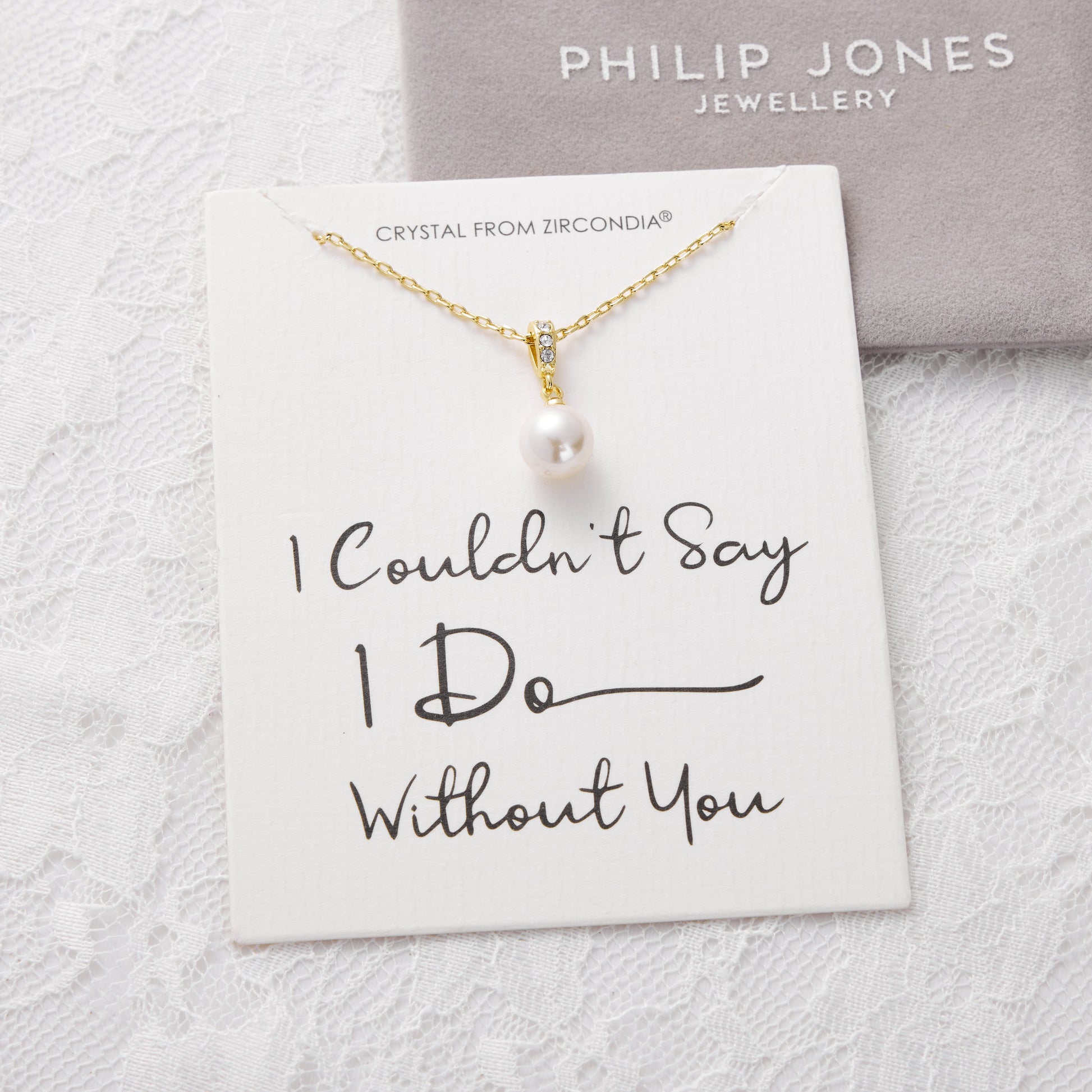 Gold Plated I Couldn't Say I Do Without You Pearl Drop Bridal Necklace Created with Zircondia® Crystals