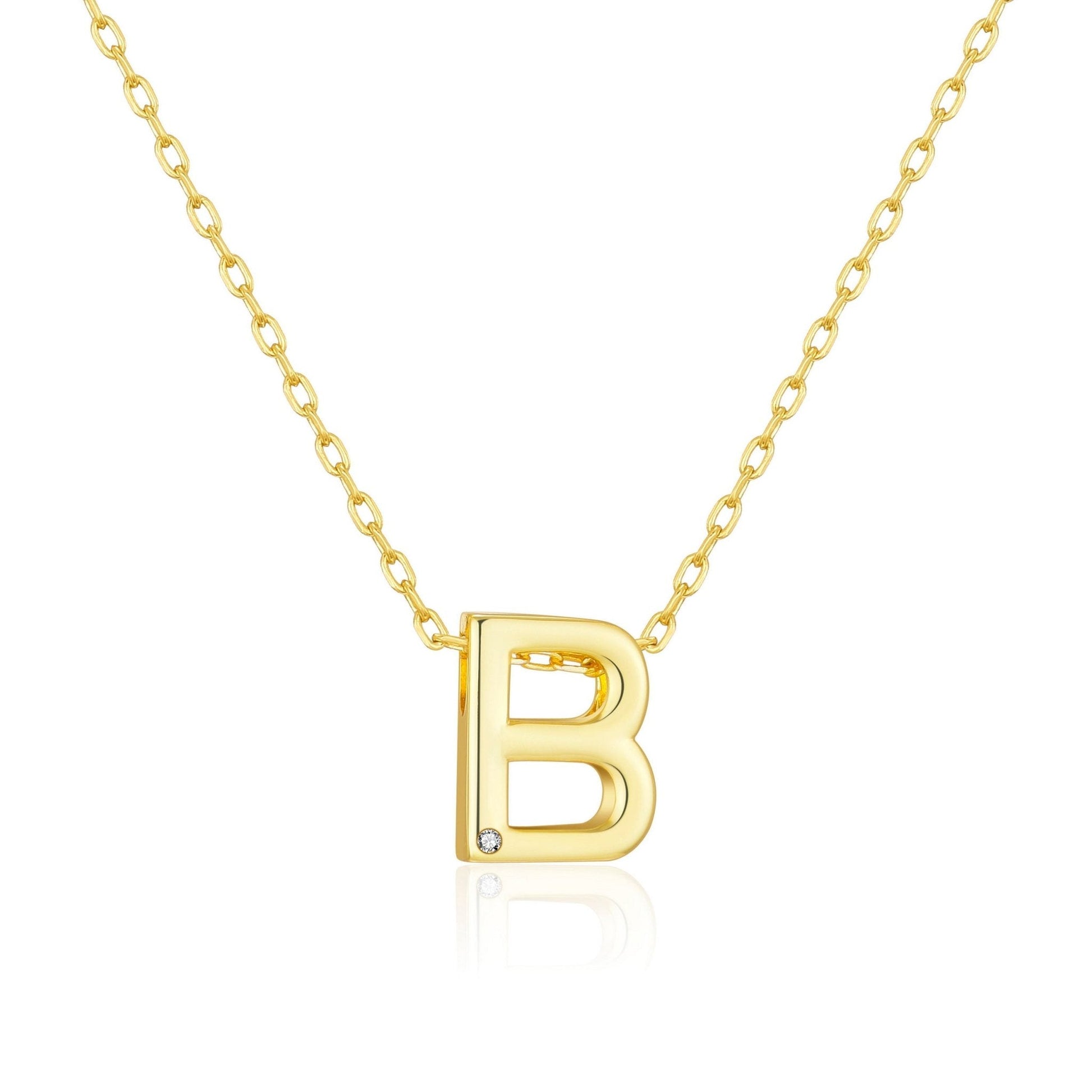 Gold Plated Initial Necklace Letter B Created with Zircondia® Crystals