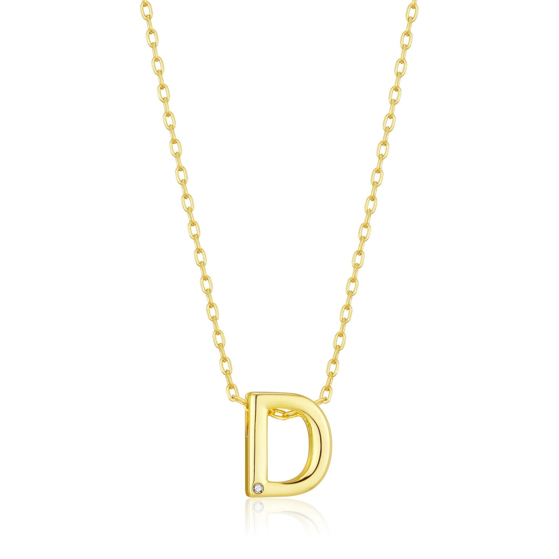 Gold Plated Initial Necklace Letter D Created with Zircondia® Crystals