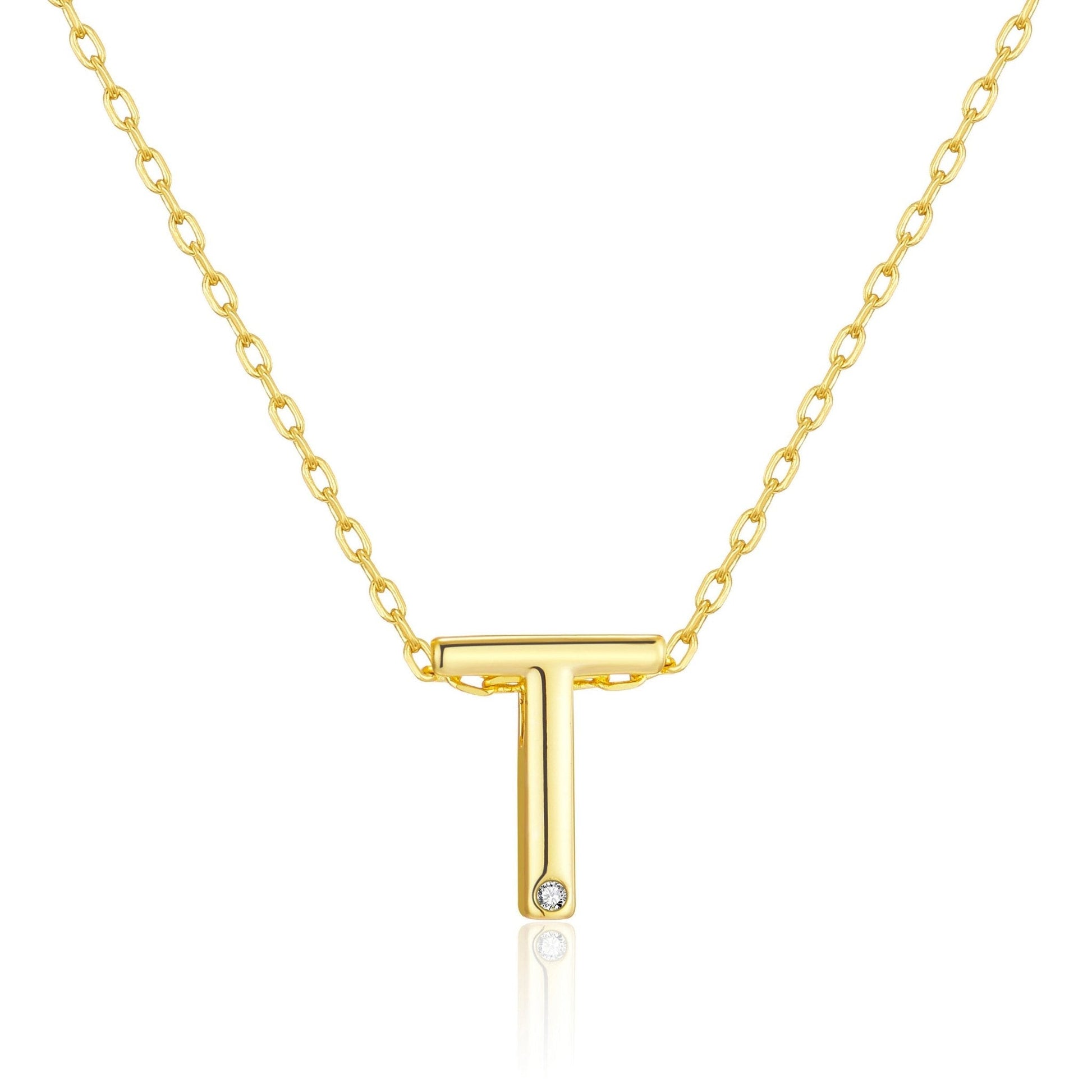 Gold Plated Initial Necklace Letter T Created with Zircondia® Crystals