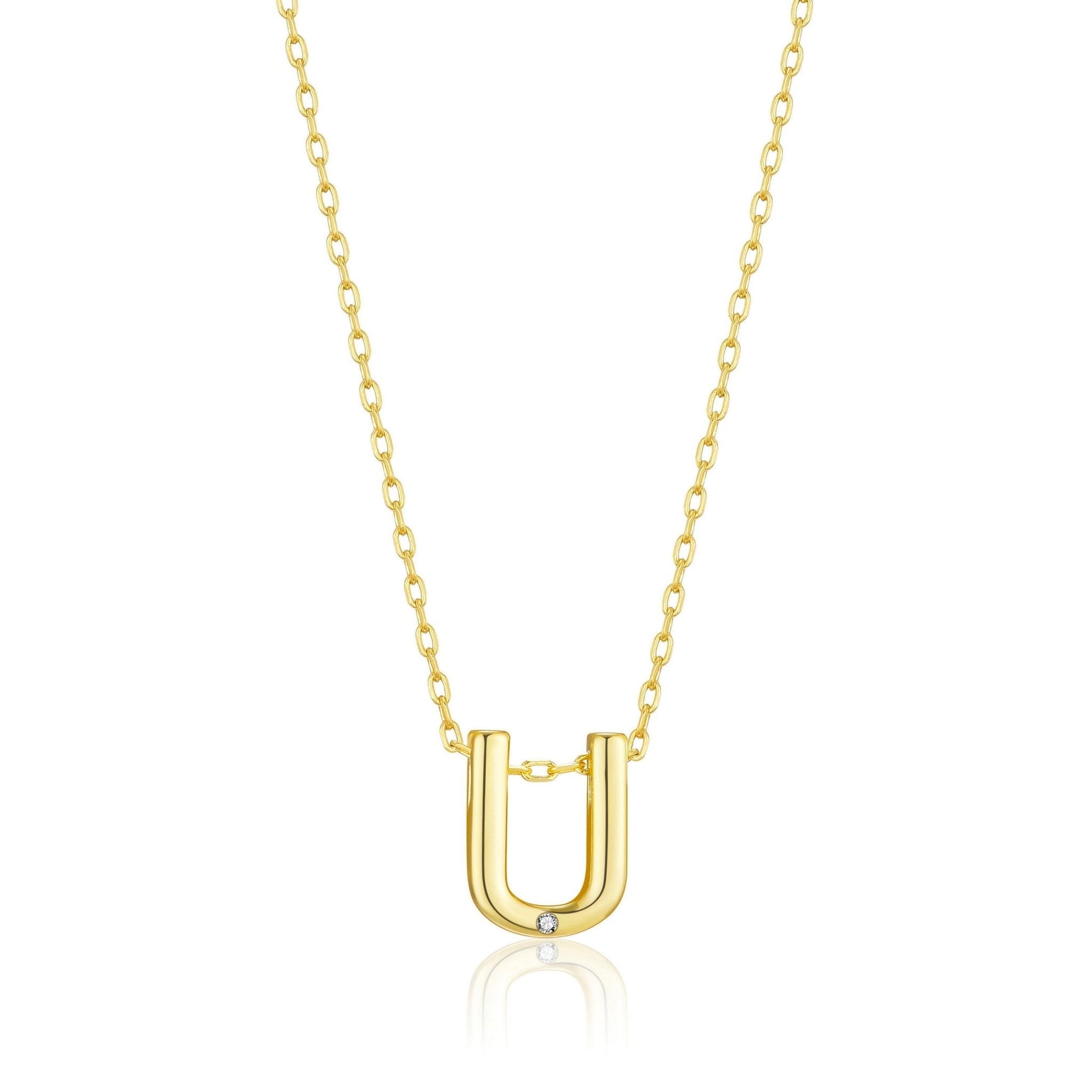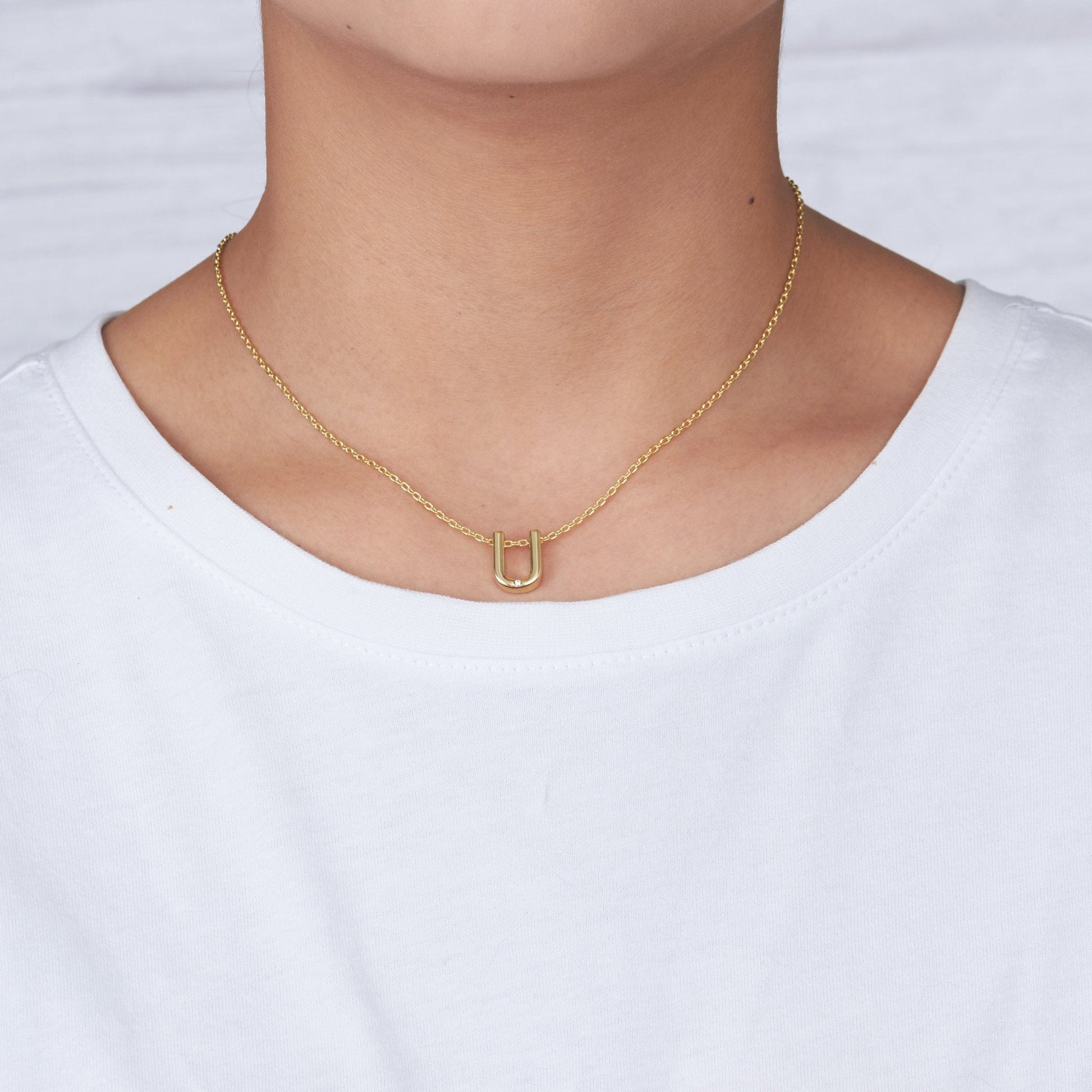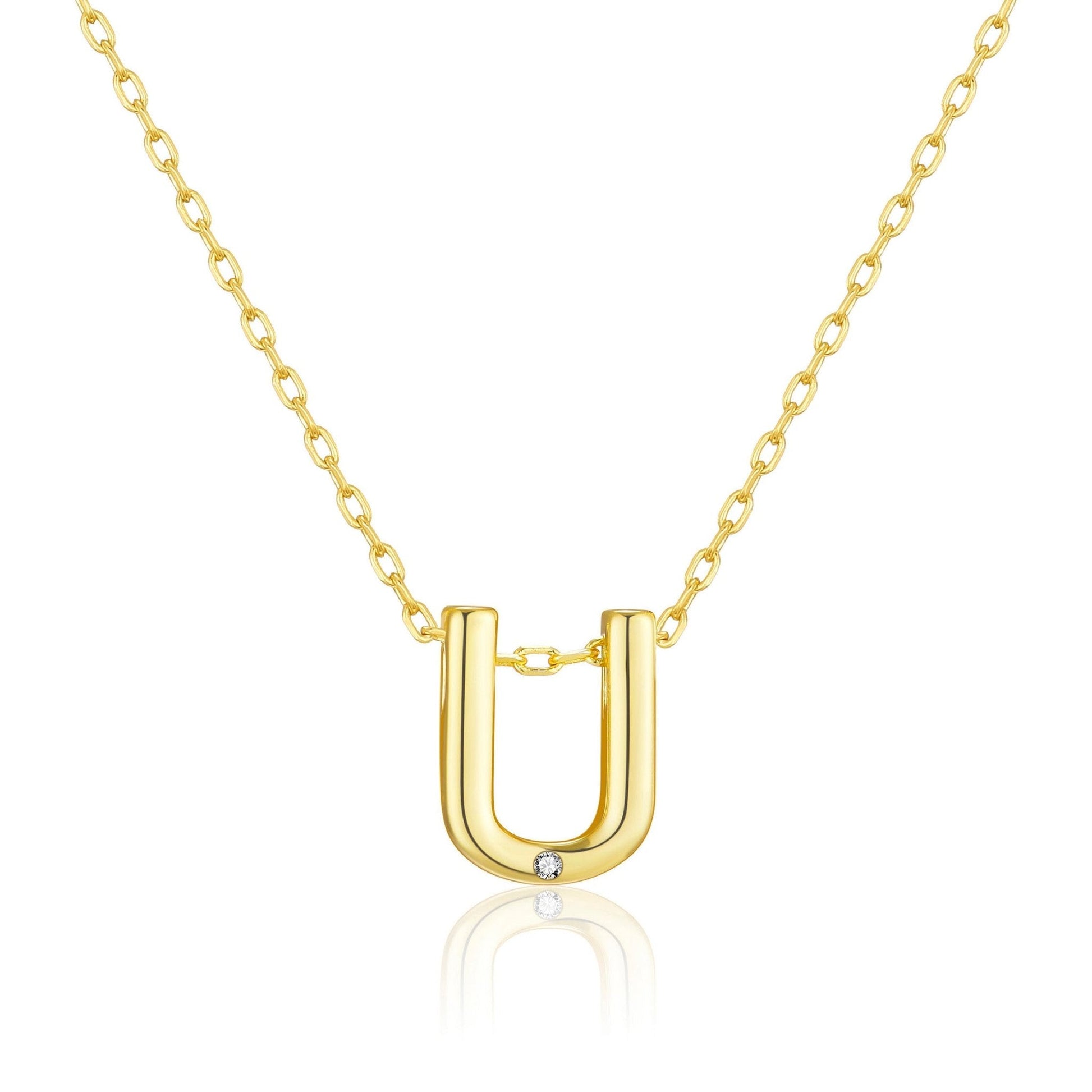 Gold Plated Initial Necklace Letter U Created with Zircondia® Crystals