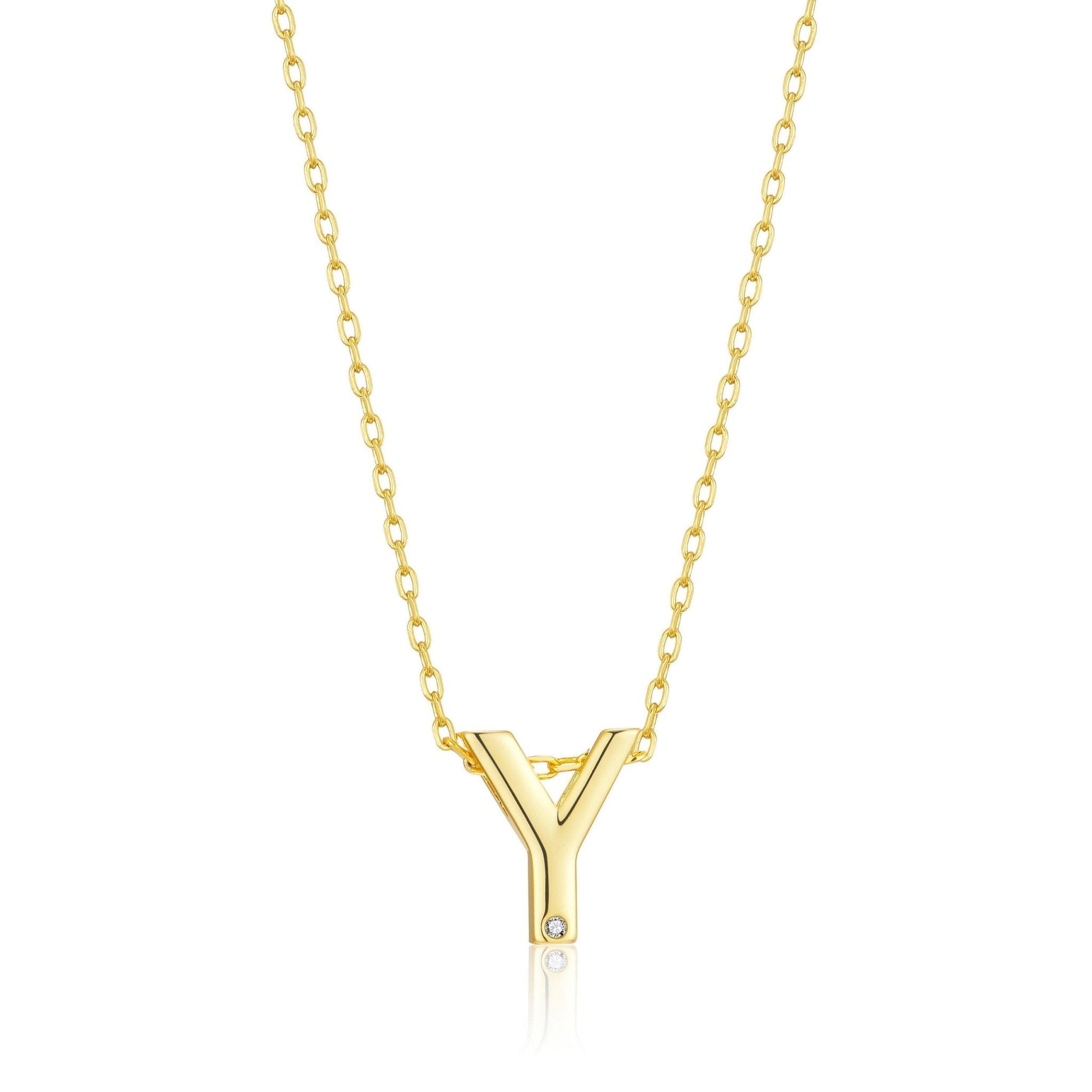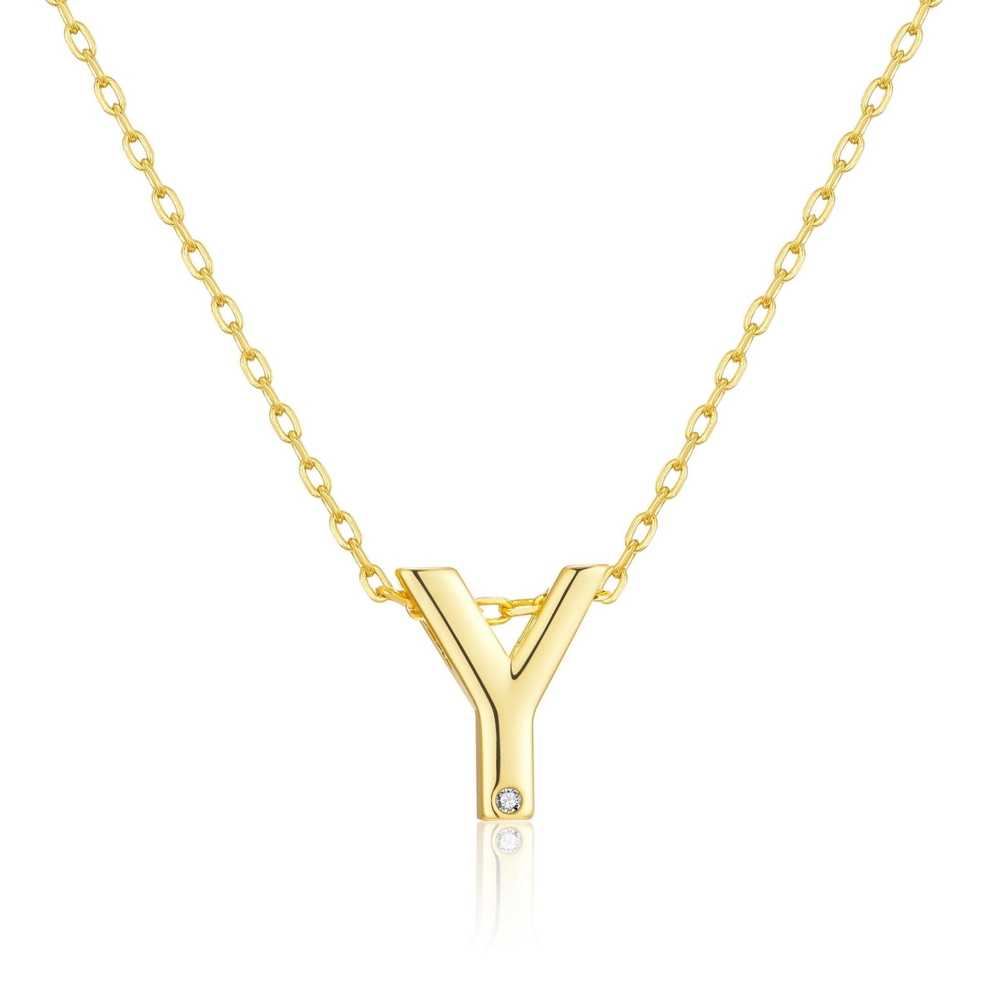 Gold Plated Initial Necklace Letter Y Created with Zircondia® Crystals