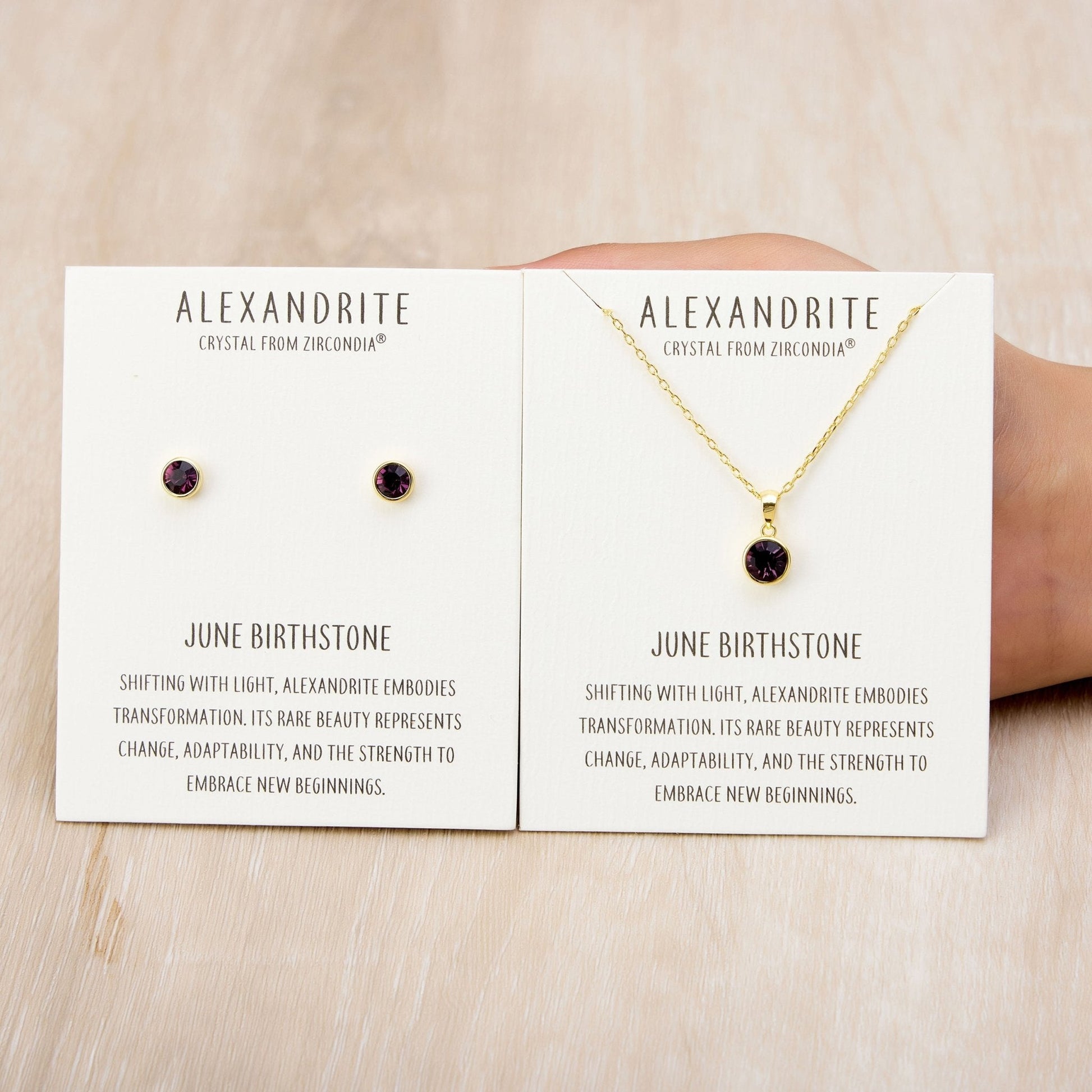 Gold Plated June (Alexandrite) Birthstone Necklace & Earrings Set Created with Zircondia® Crystals
