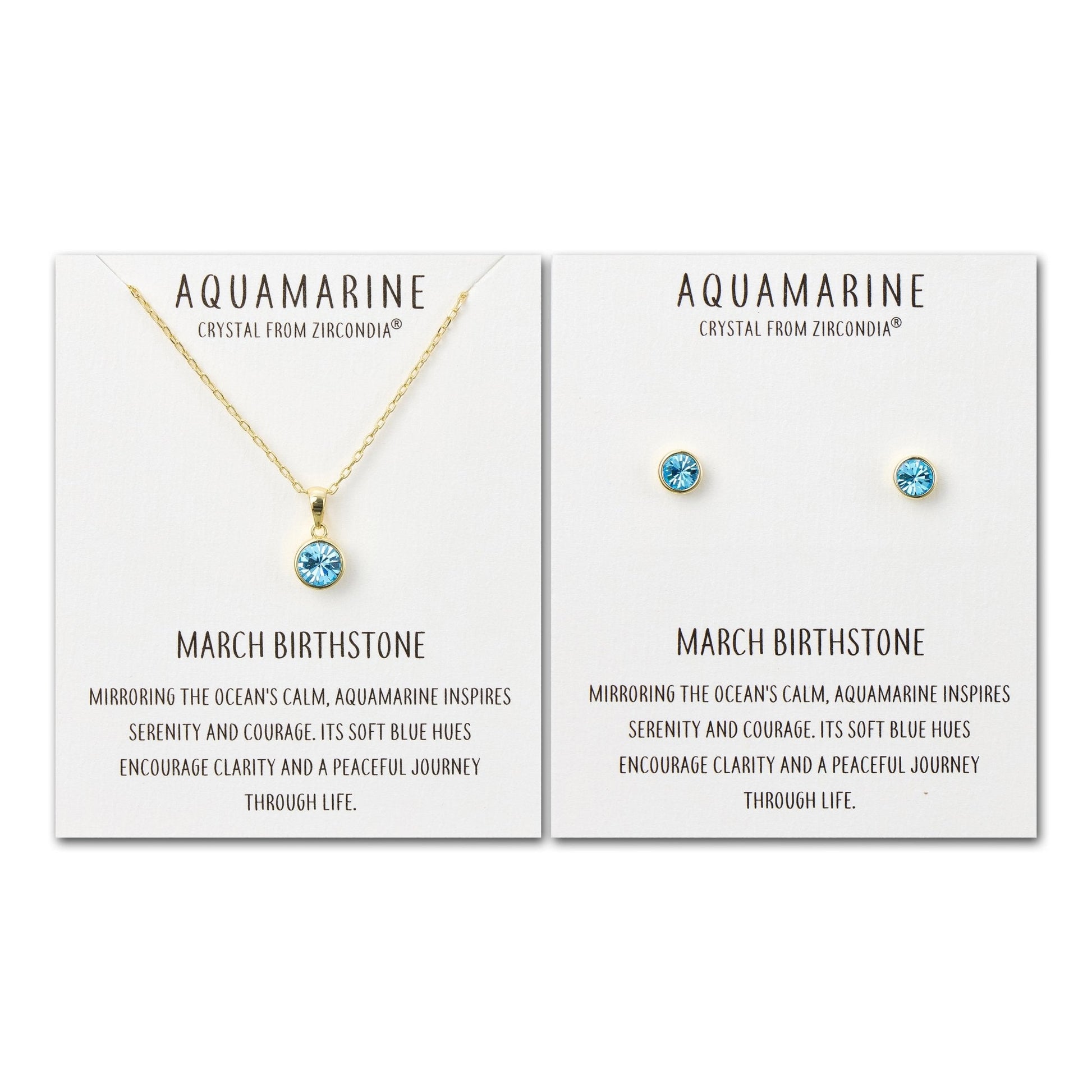 Gold Plated March (Aquamarine) Birthstone Necklace & Earrings Set Created with Zircondia® Crystals