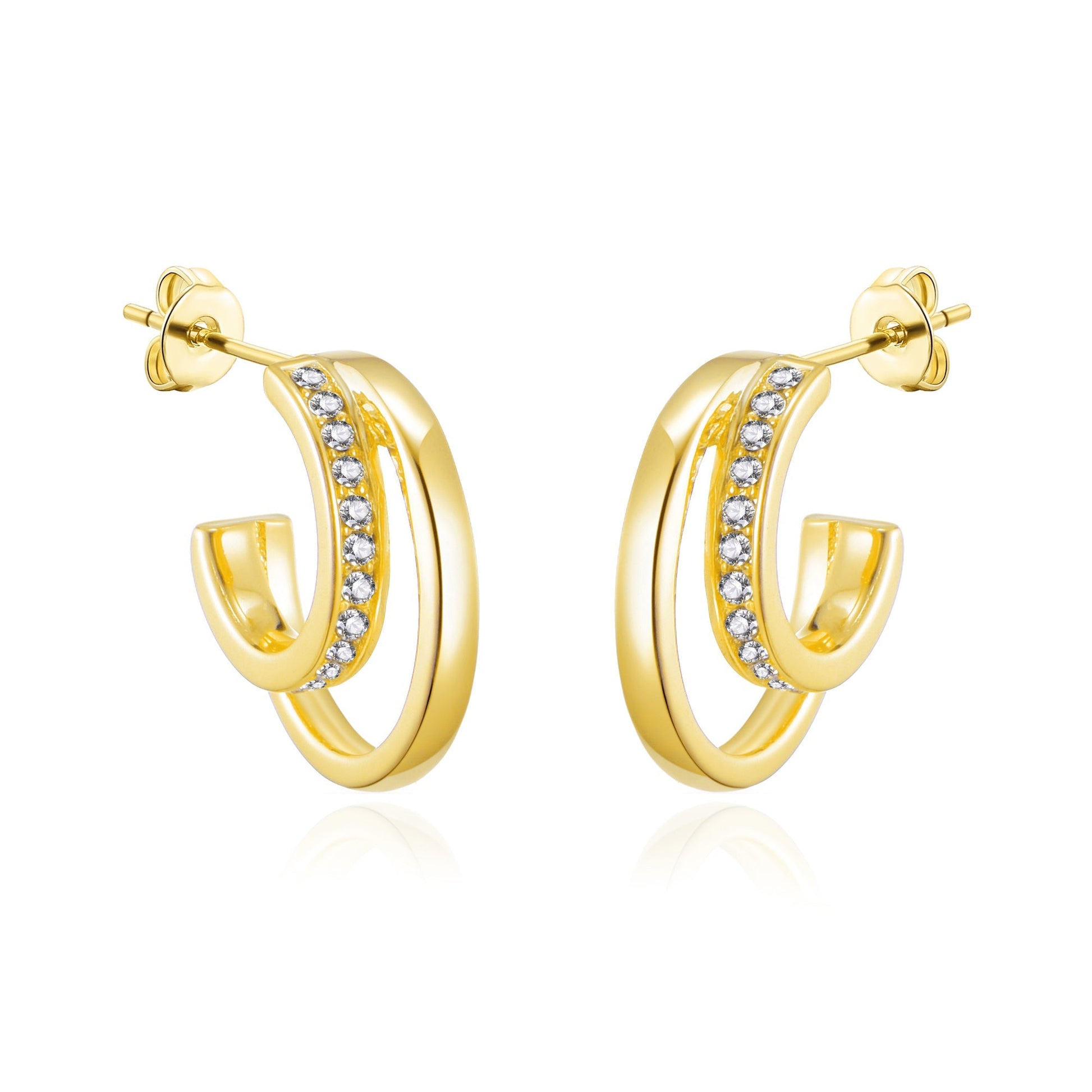 Gold Plated Open Double Hoop Earrings Created With Zircondia® Crystals18163