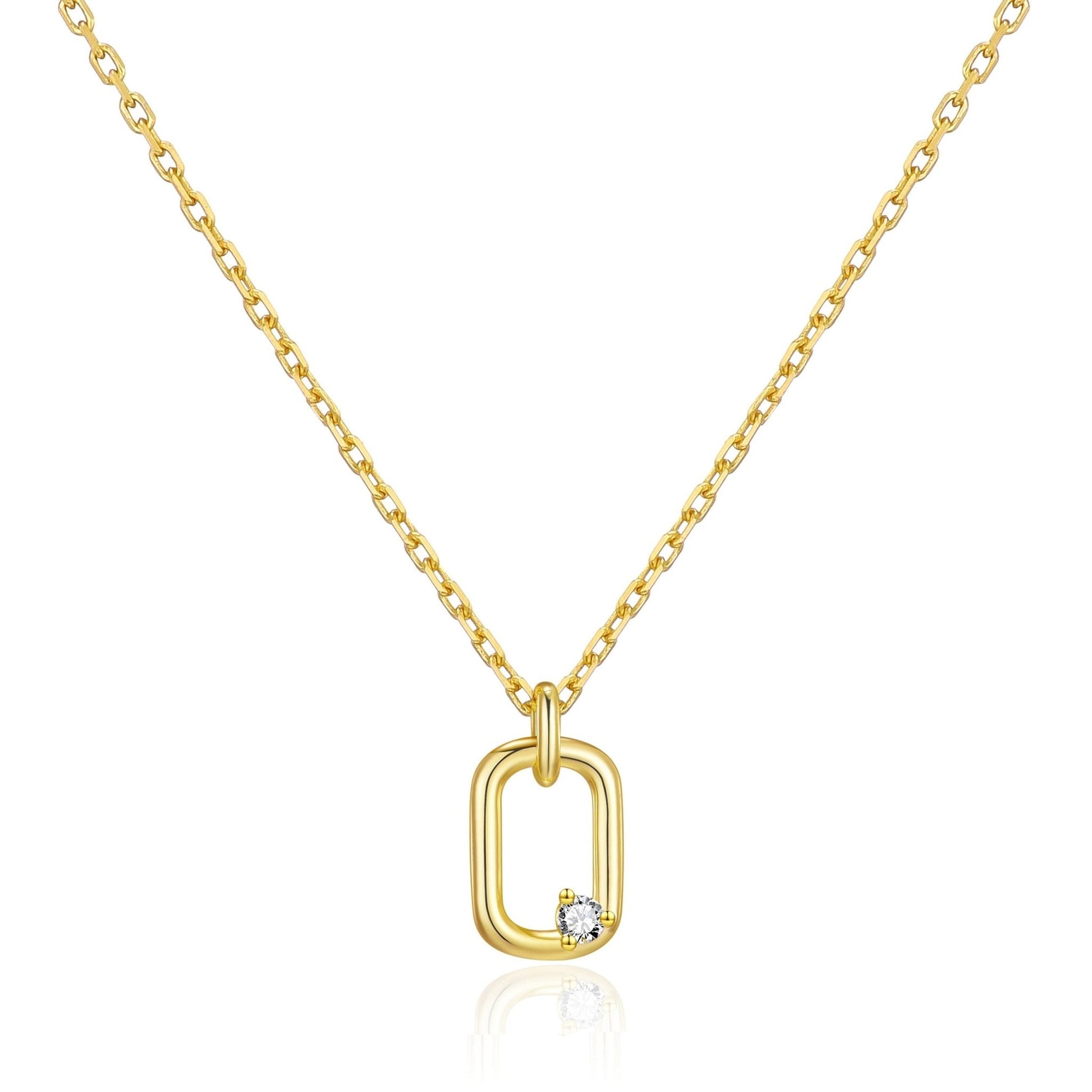 Experience the luxurious shine of Gold Plated Paperclip Necklace, adorned with Zircondia® Crystals for the perfect amount of sparkle. This necklace features hypoallergenic brass alloy and is designed with exquisite details. The pendant measures 15mm (H) x 8.5mm (W) and hangs on a 43cm chain with a 5cm extender. The lobster claw closure ensures secure wearing. This necklace is lightweight yet elegant. The round Zircondia® Crystal stones, sized at 1mm, add a touch of sophistication. This necklace comes packaged in a 7cm x 5cm gift pouch, making it a perfect gift for yourself or a loved one. Elevate your style with this stunning Gold Plated Paperclip Necklace - a must-have for any jewelry collection!