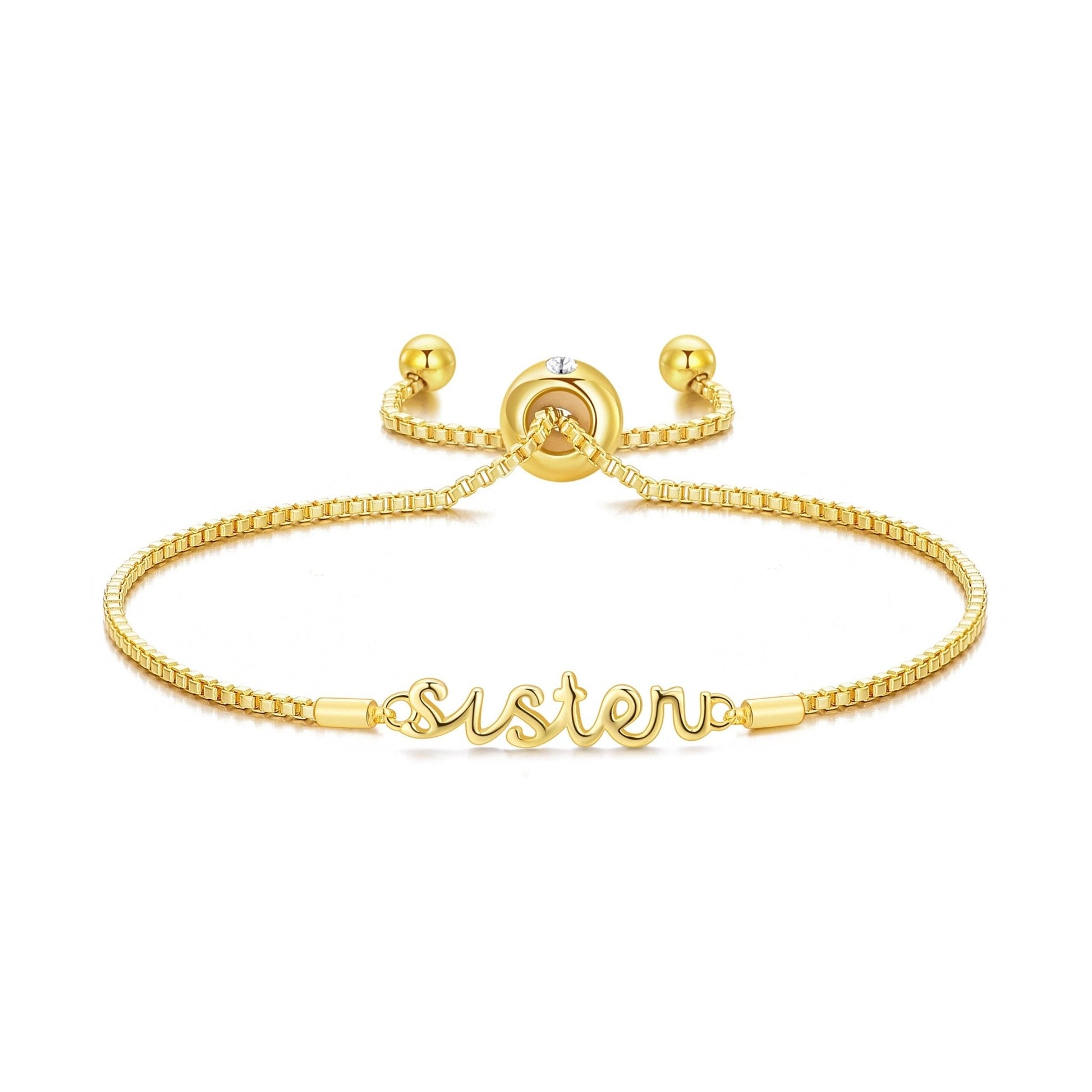 This beautiful gold plated bracelet with Zircondia® crystals is the perfect gift for your sister. Crafted from hypoallergenic brass alloy with a slider closure for adjustable fit, the bracelet wraps around the wrist with a unique charm measuring 5mm (H) x 24.6mm (L). Stylish and timeless, each crystal sparkles with an eye-catching clarity. Get a gift they'll treasure forever in the Philip Jones gift pouch!