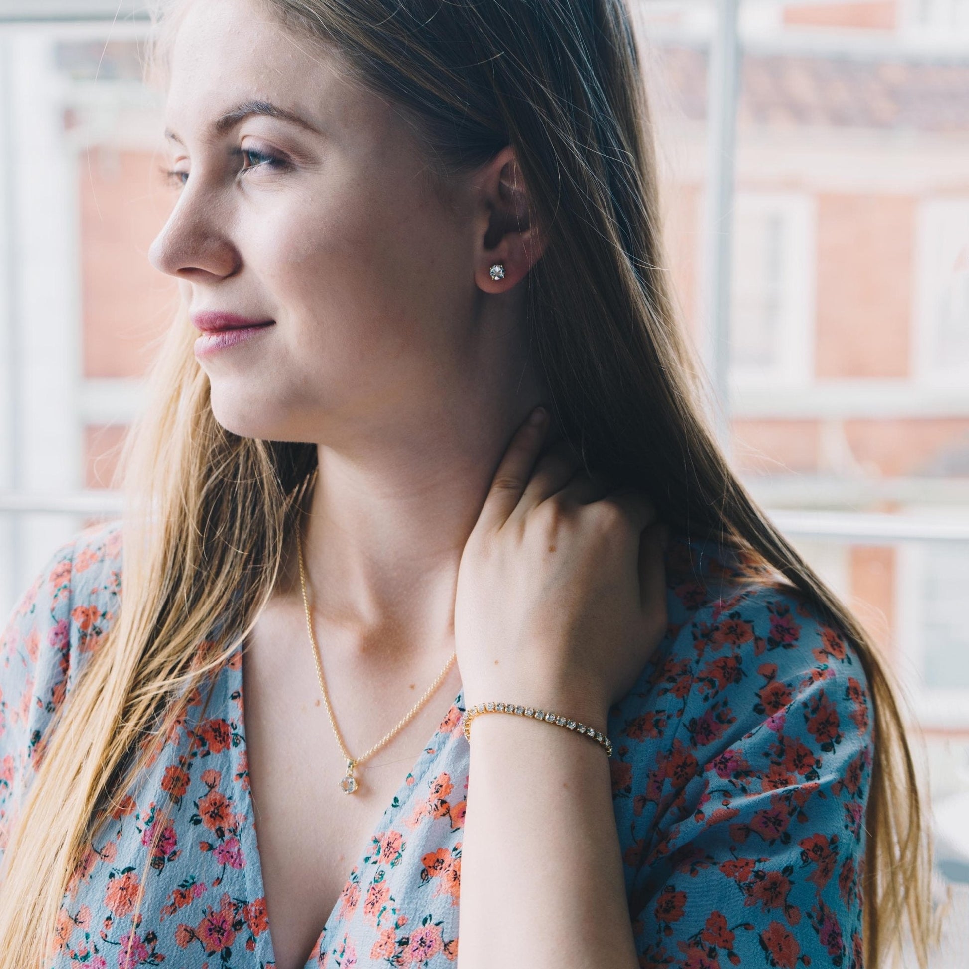 This Philip Jones Gold Plated Solitaire Friendship Set Created with Zircondia® Crystals is crafted with hypoallergenic materials for a beautiful, timeless look. The earrings, necklace, and adjustable bracelet sparkle with genuine Zircondia® Crystals for that extra bit of glamour and elegance. Make your statement today!