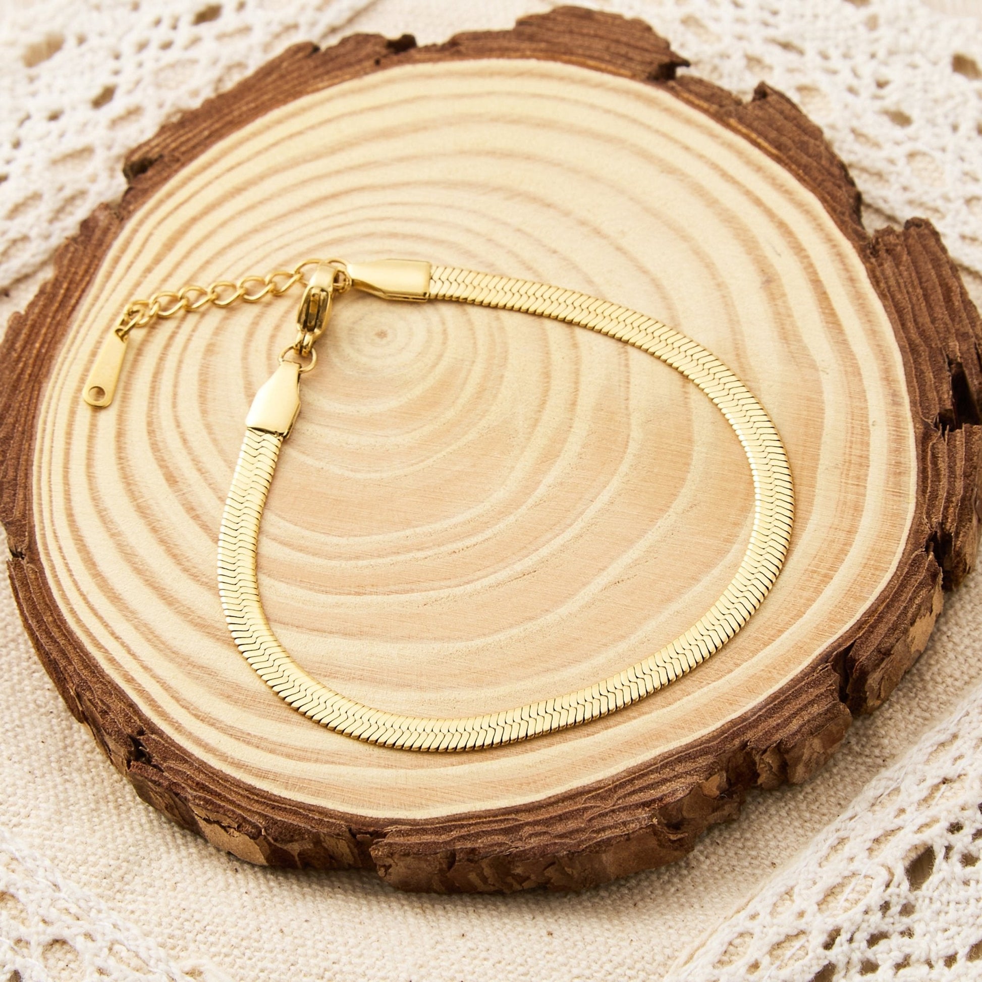 Gold Plated Stainless Steel Herringbone Flat Snake Chain Bracelet