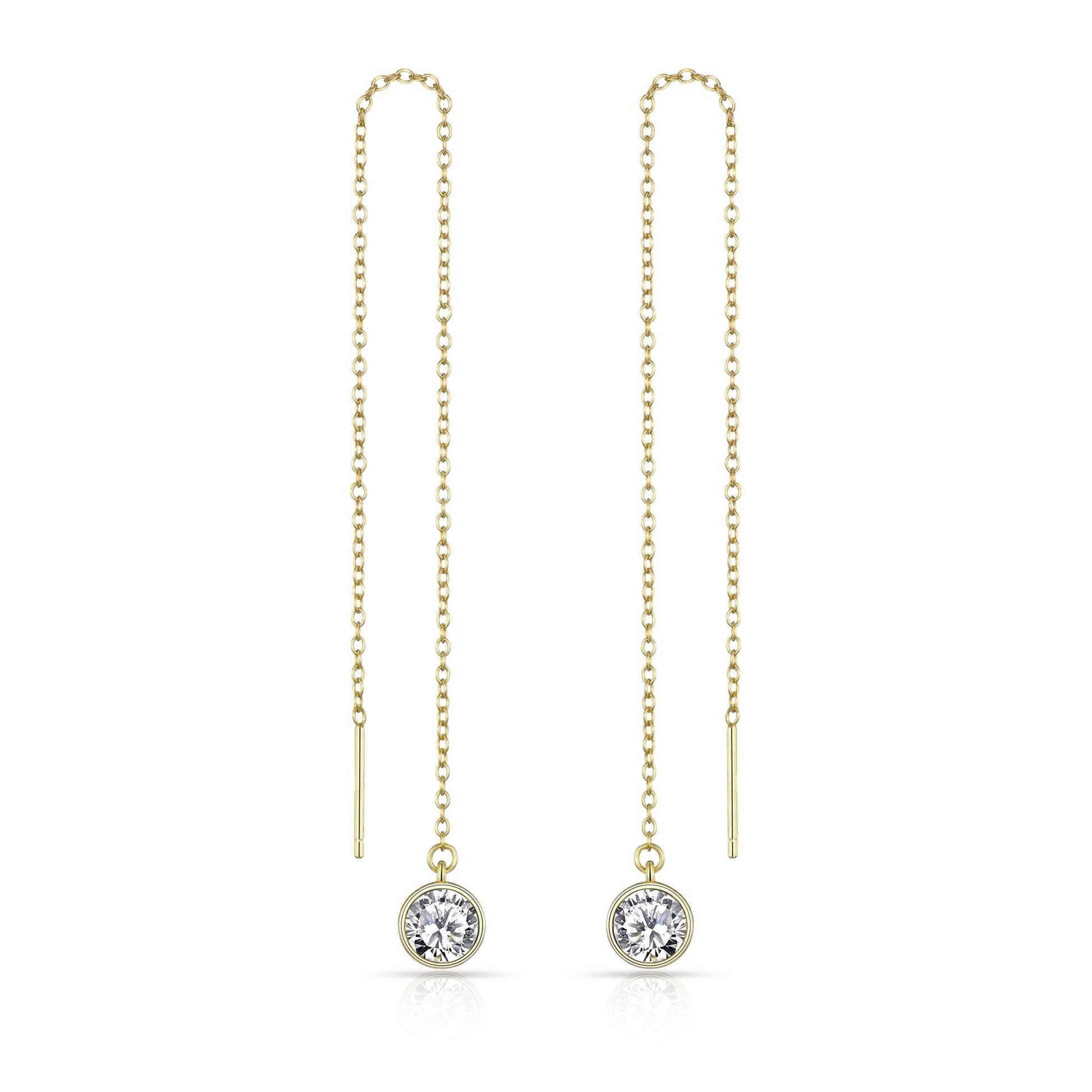 Gold Plated Sterling Silver Thread Earrings Created with Zircondia® Crystals