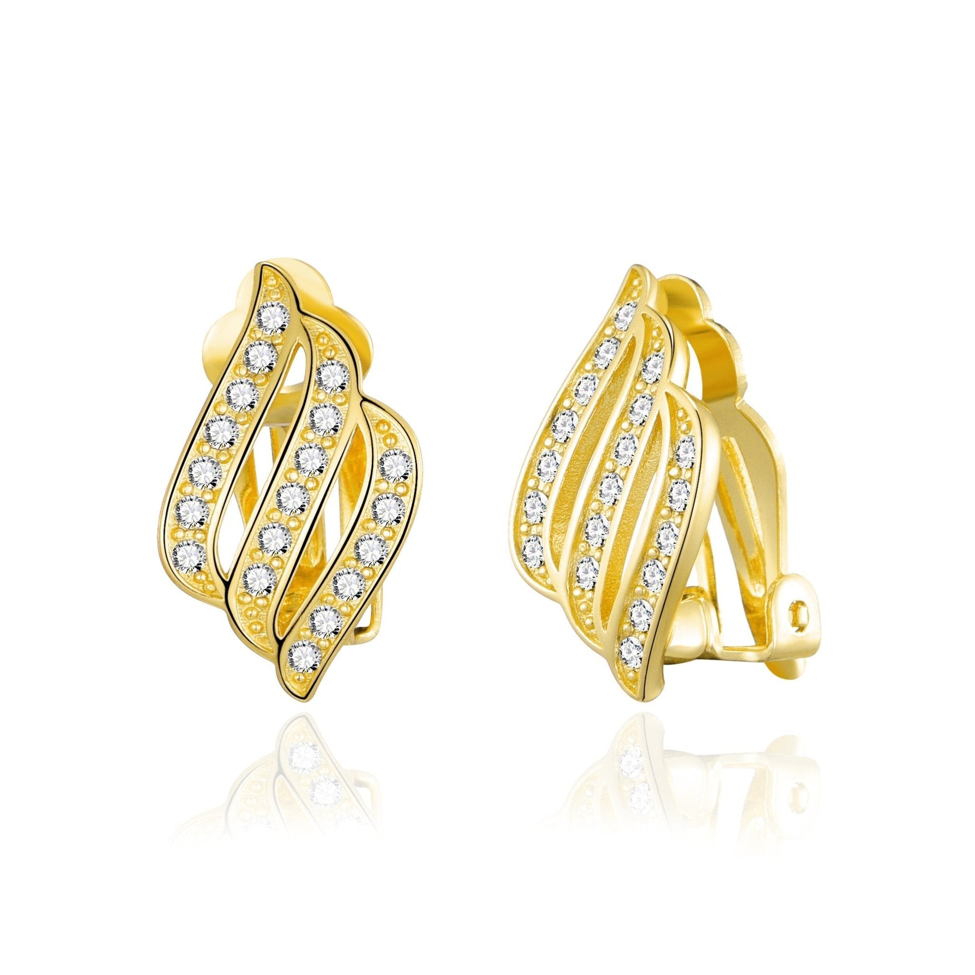Gold Plated Triple Row Clip On Earrings Created with Zircondia® Crystals