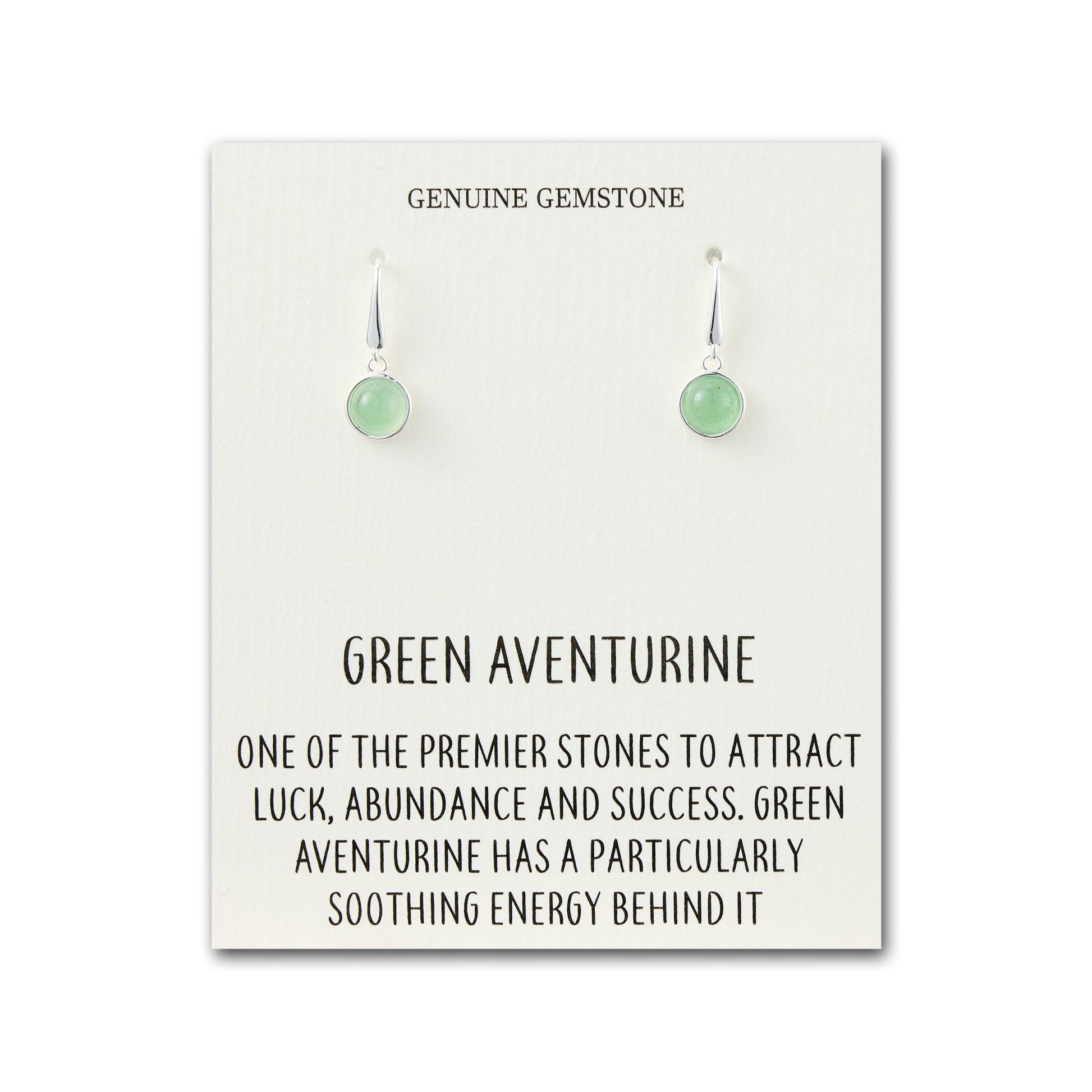 Add a touch of elegance and style to every outfit with these beautiful Green Aventurine Drop Earrings. Crafted with genuine gemstones, these silver plated earrings have a hypoallergenic, brass alloy base and a French hook closure. Each stud measures 20x7mm and is accompanied by a delightful 6mm round green aventurine stone. Packaged in a luxurious 9x10cm gift pouch with a quote card, these earrings make the perfect gift!