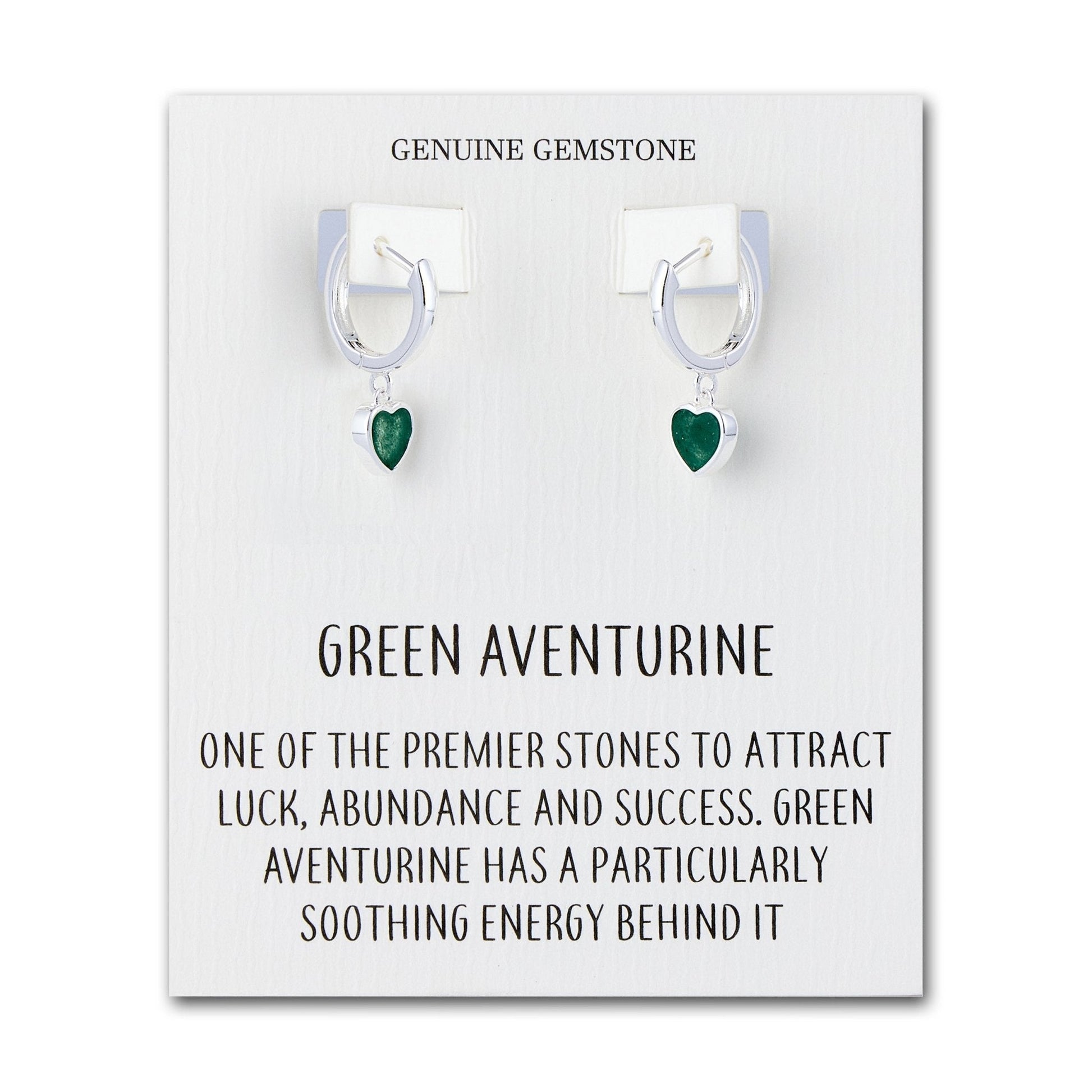 Green Aventurine Gemstone Heart Charm Hoop Earrings with Quote Card