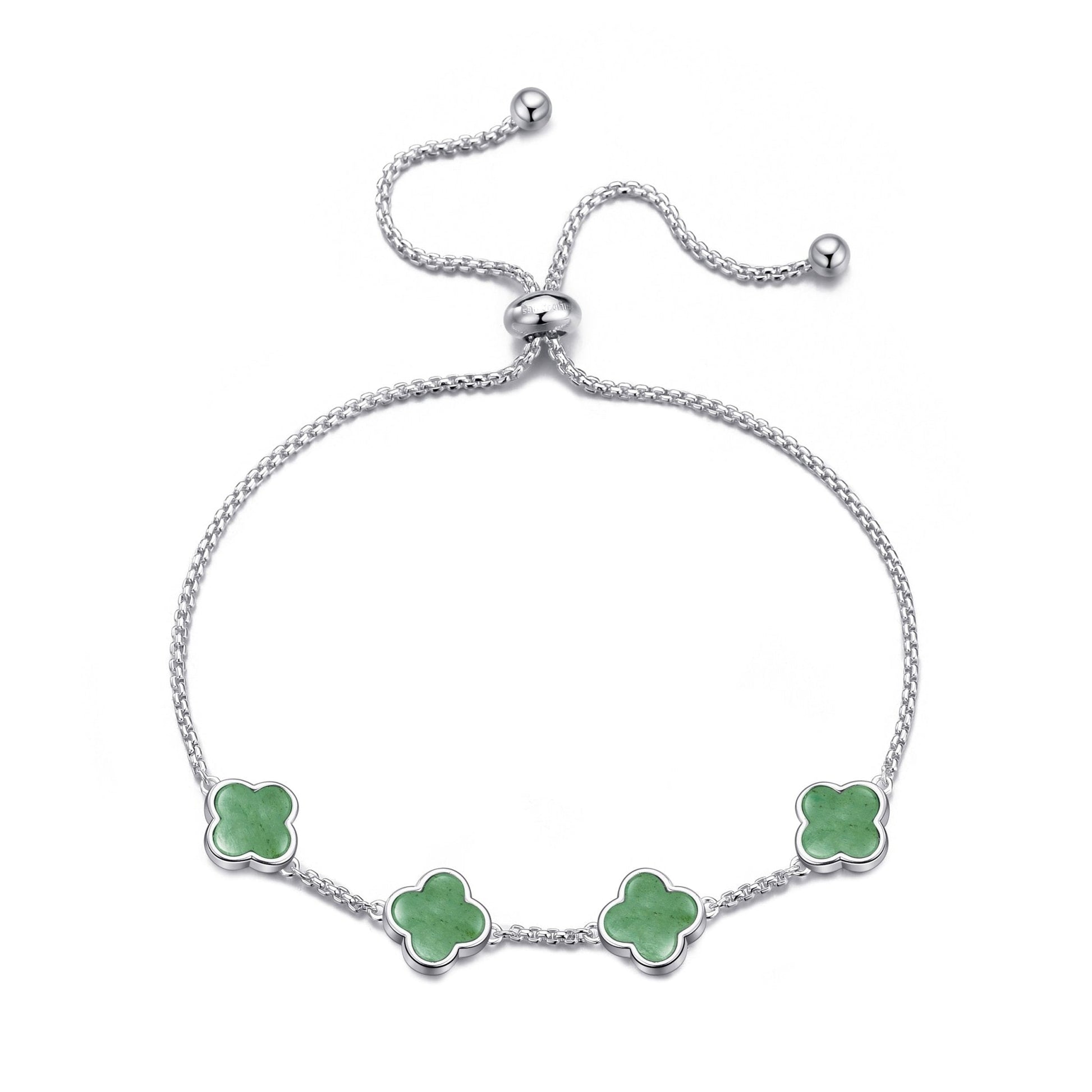 Experience the beauty and power of Green Aventurine with the Genuine Gemstones Multi Clover Friendship Bracelet. Made with Silver Plated Hypoallergenic details, this bracelet features 4 sparkling clover-shaped Green Aventurine stones that measure 9.5mm. The adjustable closure allows for a perfect fit, while the included gift pouch packaging adds an extra touch of elegance. So whether you're treating yourself or giving it as a meaningful gift to a friend, this bracelet is sure to make a lasting impression.