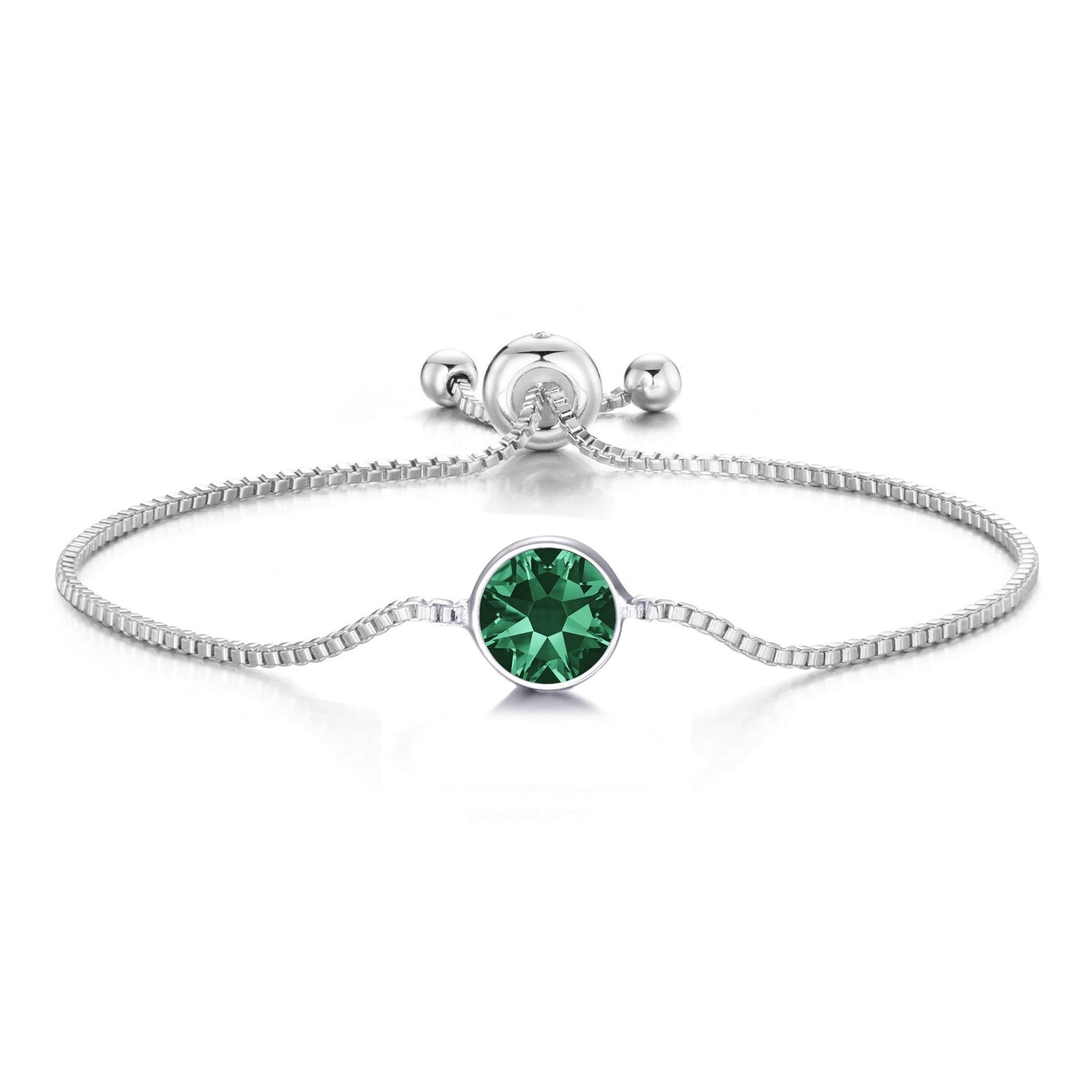 Add sparkle and shine to your style with this beautiful Green Crystal Bracelet created with Zircondia® crystals. Crafted with Silver Plated metal and hypoallergenic base metal, the bracelet has an adjustable length of 12cm-24cm and a weight of 5.5g. The centrepiece is a round 8.5mm crystal in a stunning green hue, paired with a 1.5mm round clear crystal for added sparkle. Comes with a 9cm x 10cm gift pouch.