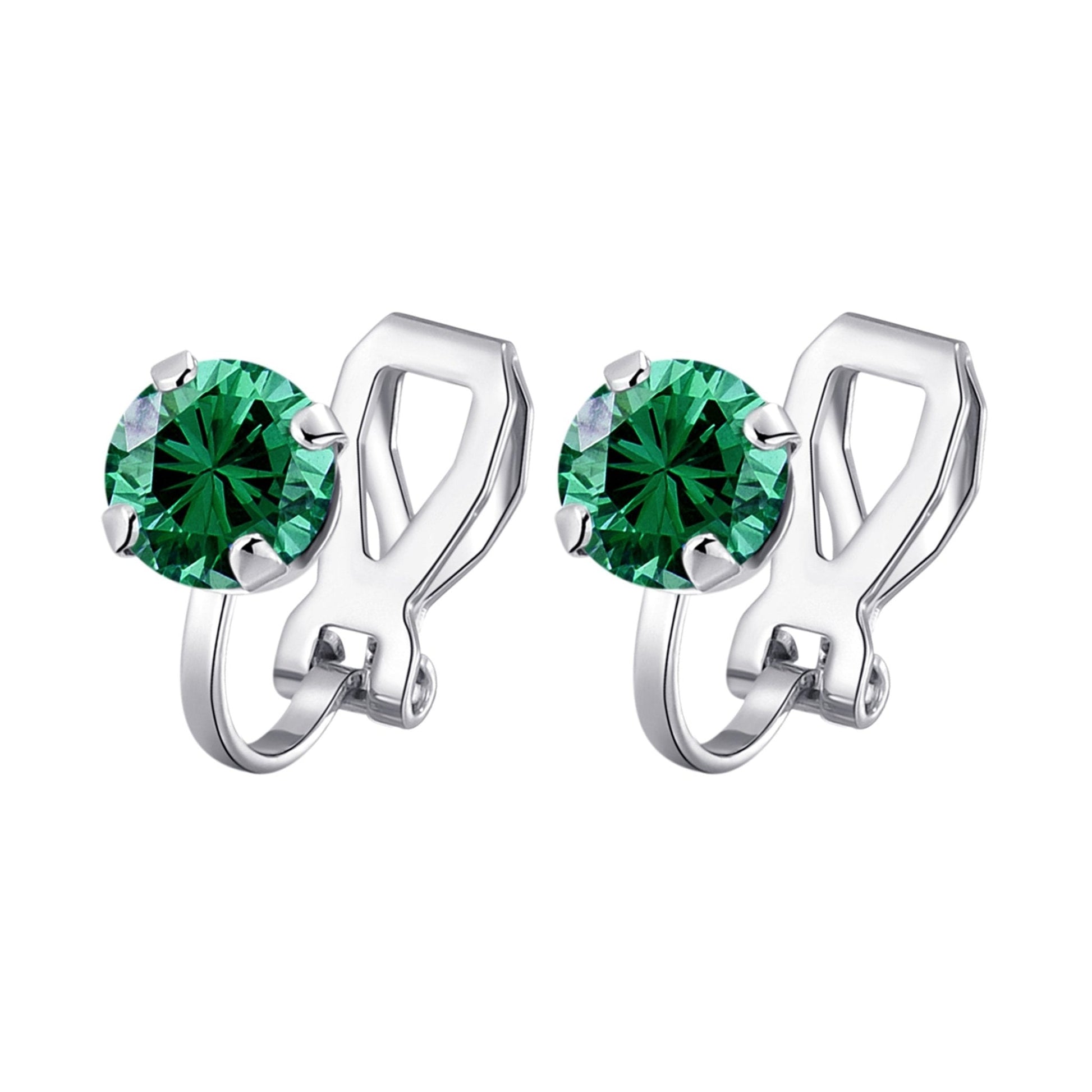 Glimmering with Zircondia® Crystals, these exclusive Green Clip On Earrings shine in Silver Plated Hypoallergenic metal. Crafted by Philip Jones, these stunning studs feature a 4-prong setting Over brass alloy and measure 16mm x 8mm. Each earring dazzles with a 6mm round-cut gemstone. With a weight of 1.89g, these earrings come in a beautiful gift pouch, perfectly sized at 8.5cm x 9.5cm.