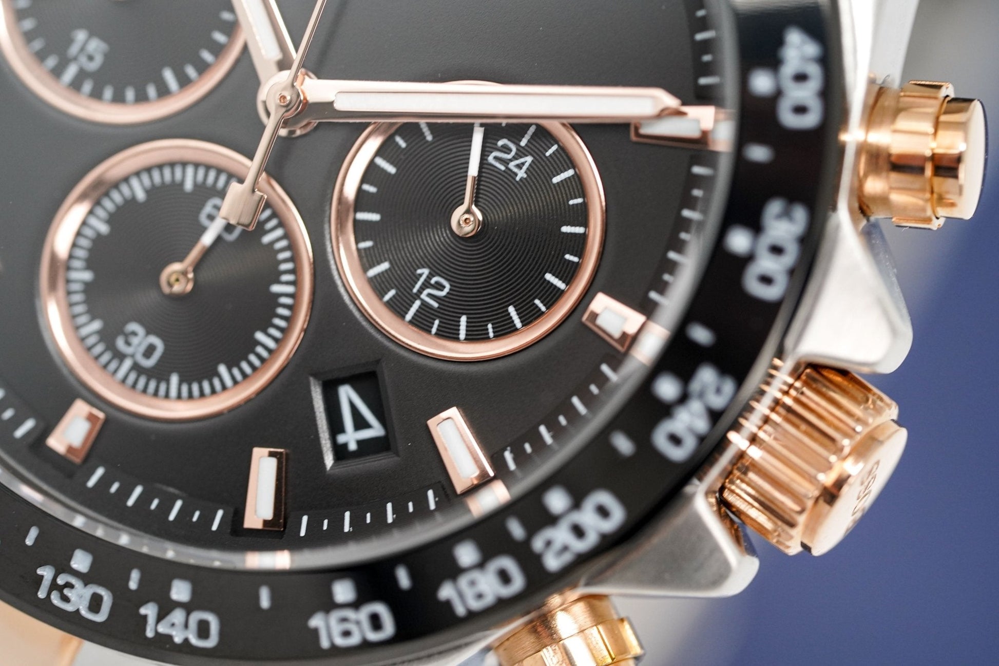 Japanese Made Quartz Chronograph Movement. Millisecond Counter. Running Seconds. Seconds Counter, 60 Minute Counter. Date.