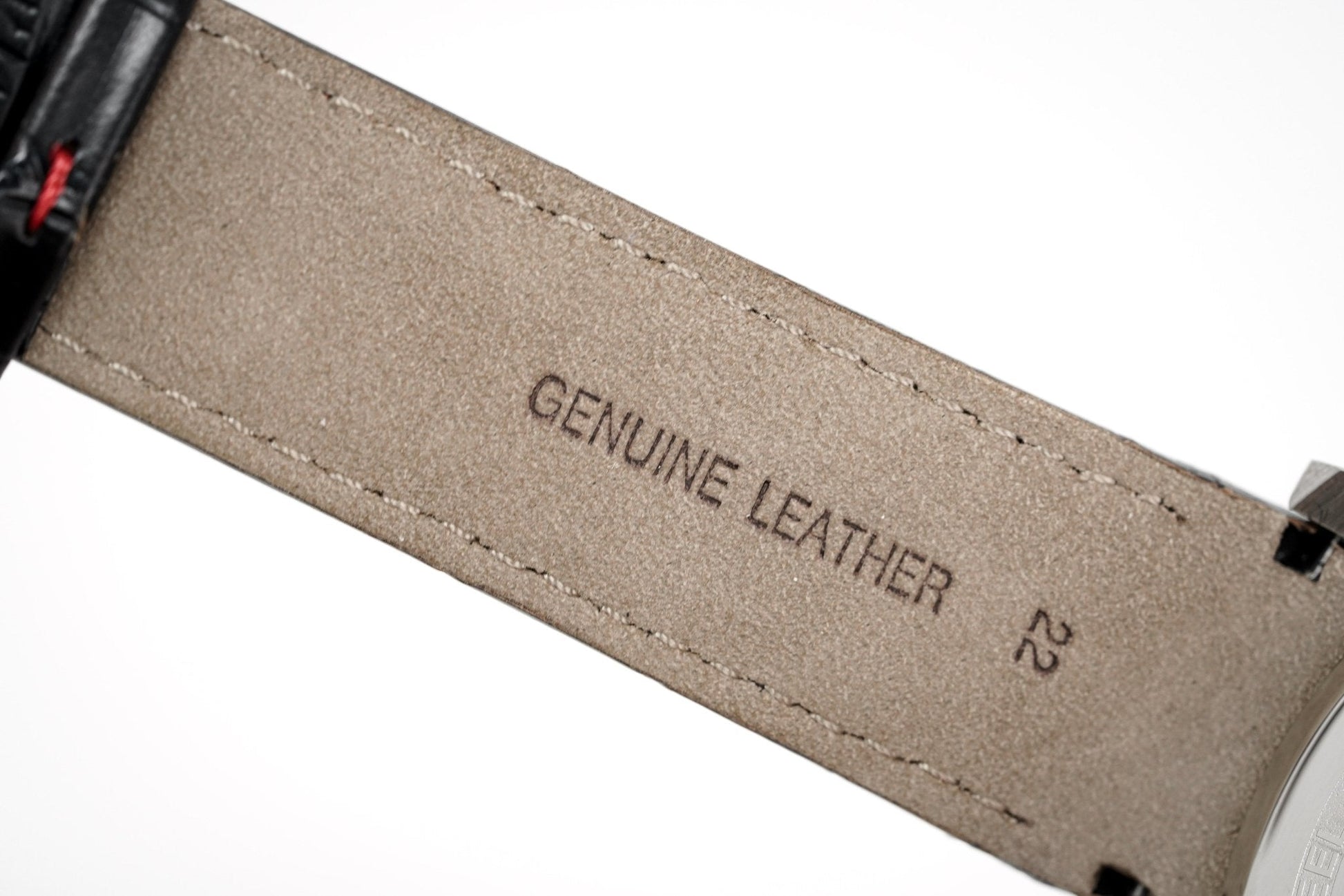 Black Croco Imitation Leather Strap with Stainless Steel Pin Buckle.