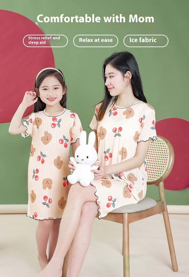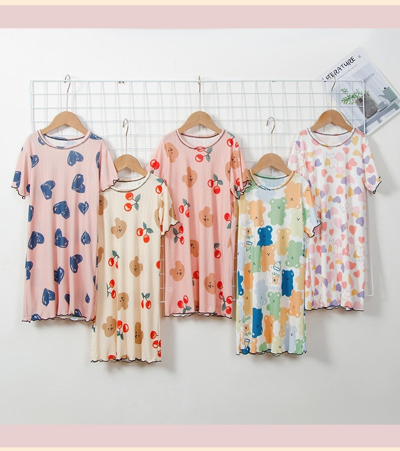 Color: Qi-pajamas) colorful bear, Qi-pajamas) pink strawberry, Qi-pajamas) pink little love, Qi-pajamas) beige Cherry Bear, Qi-pajamas) dark blue big love, qi-nightdress) Pink Cherry Bear
