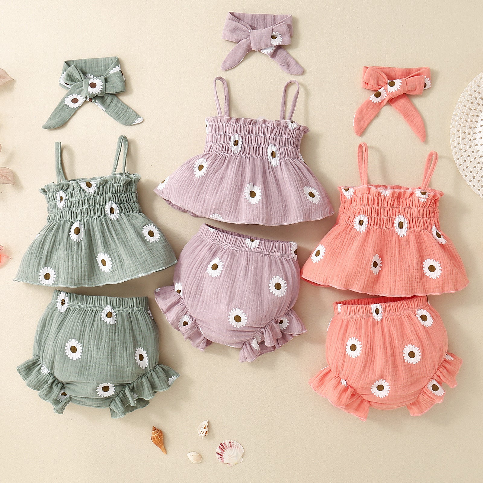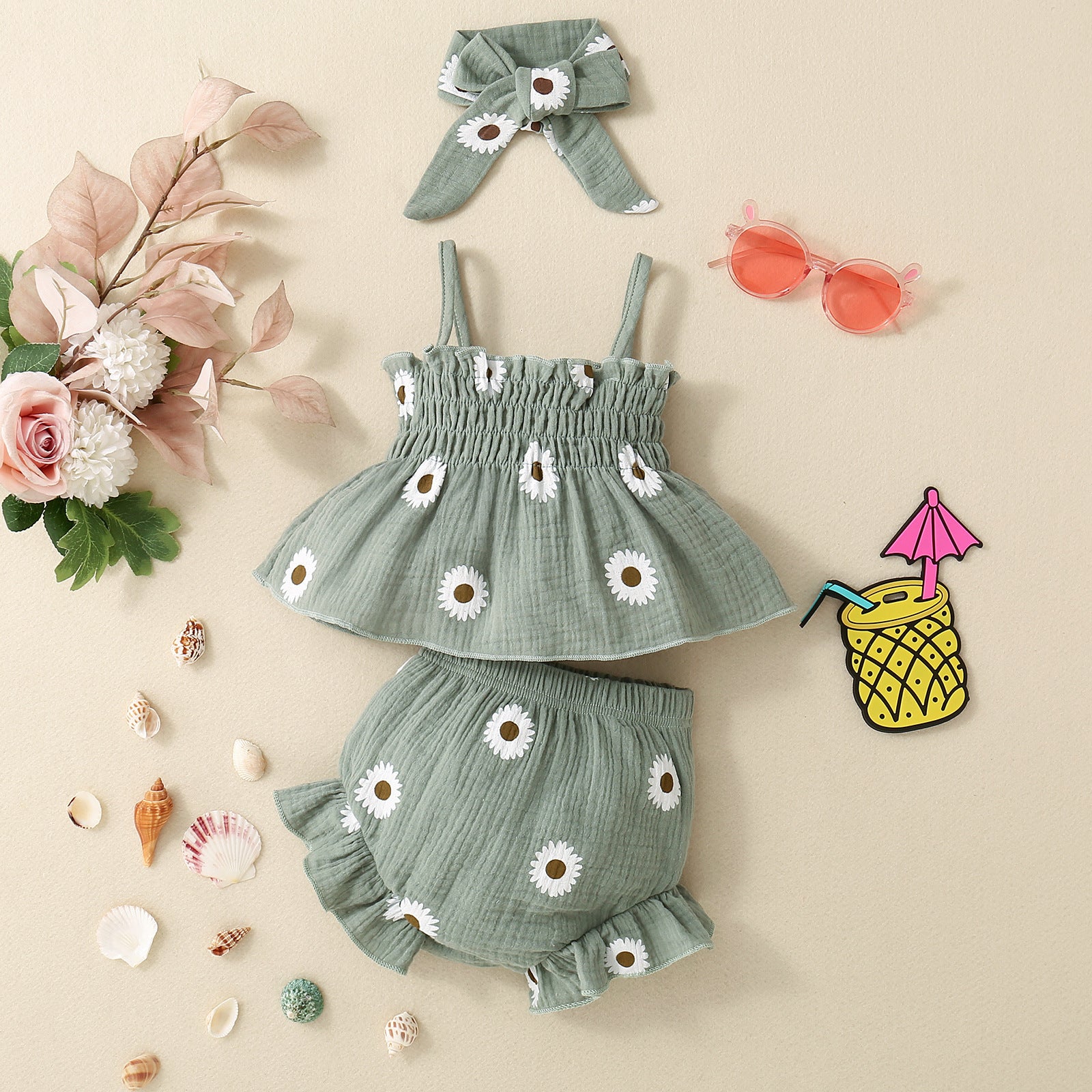 Infant Sunken Stripe Suspender Skirt Shorts Headscarf Three-piece Set