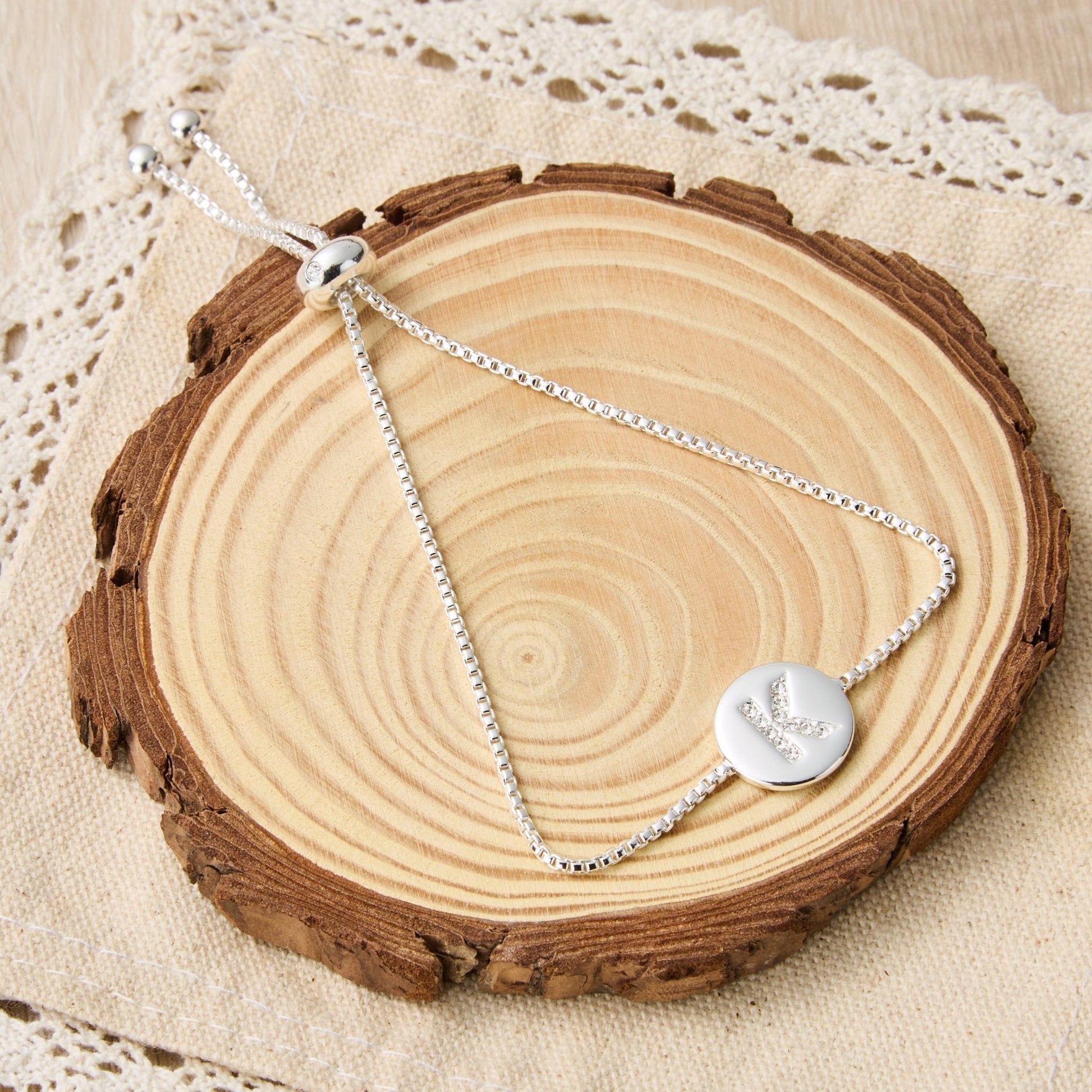 Express your love and friendship with this stunning Initial K Friendship Bracelet, created with Zircondia® Crystals. Showcasing a beautiful letter K in Silver Plated and Hypoallergenic metal, this bracelet has a 12-24cm adjustable length with a slider closure. A gorgeous gift with soft, sparkling 1 & 1.5mm Crystals from Zircondia® that will surely make the recipient feel special! Comes with a Gift Pouch.