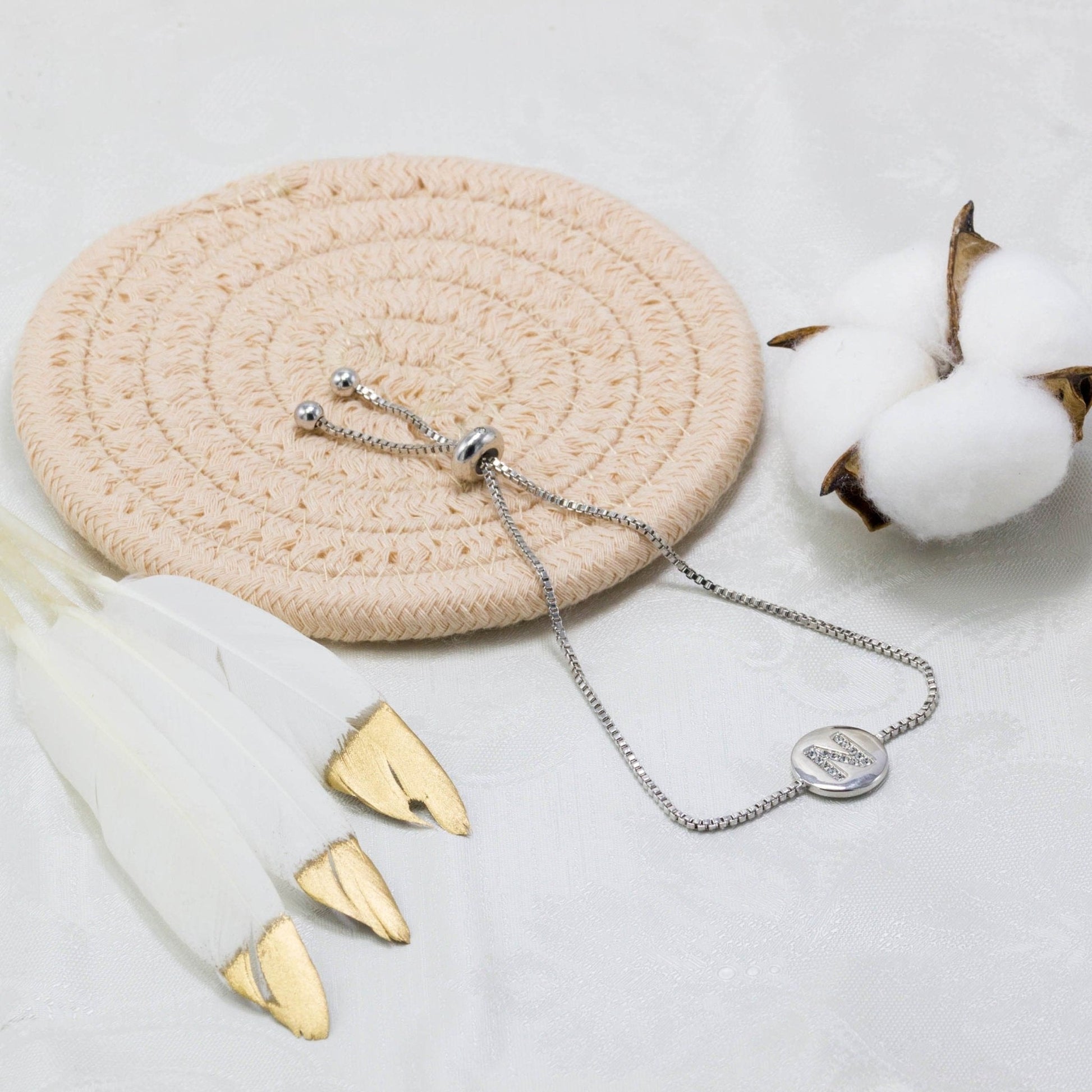 Make a statement with this Initial Friendship Bracelet Letter N created with Zircondia® Crystals. Crafted with hypoallergenic silver plated brass alloy, stylishly designed with a 14.8mm height and width, and adjustable from 12cm-24cm. 14 clear 1mm Round Crystals from Zircondia® and 1 clear 1.5mm round crystal complete the look. Comes with a gift pouch for a perfect gift.