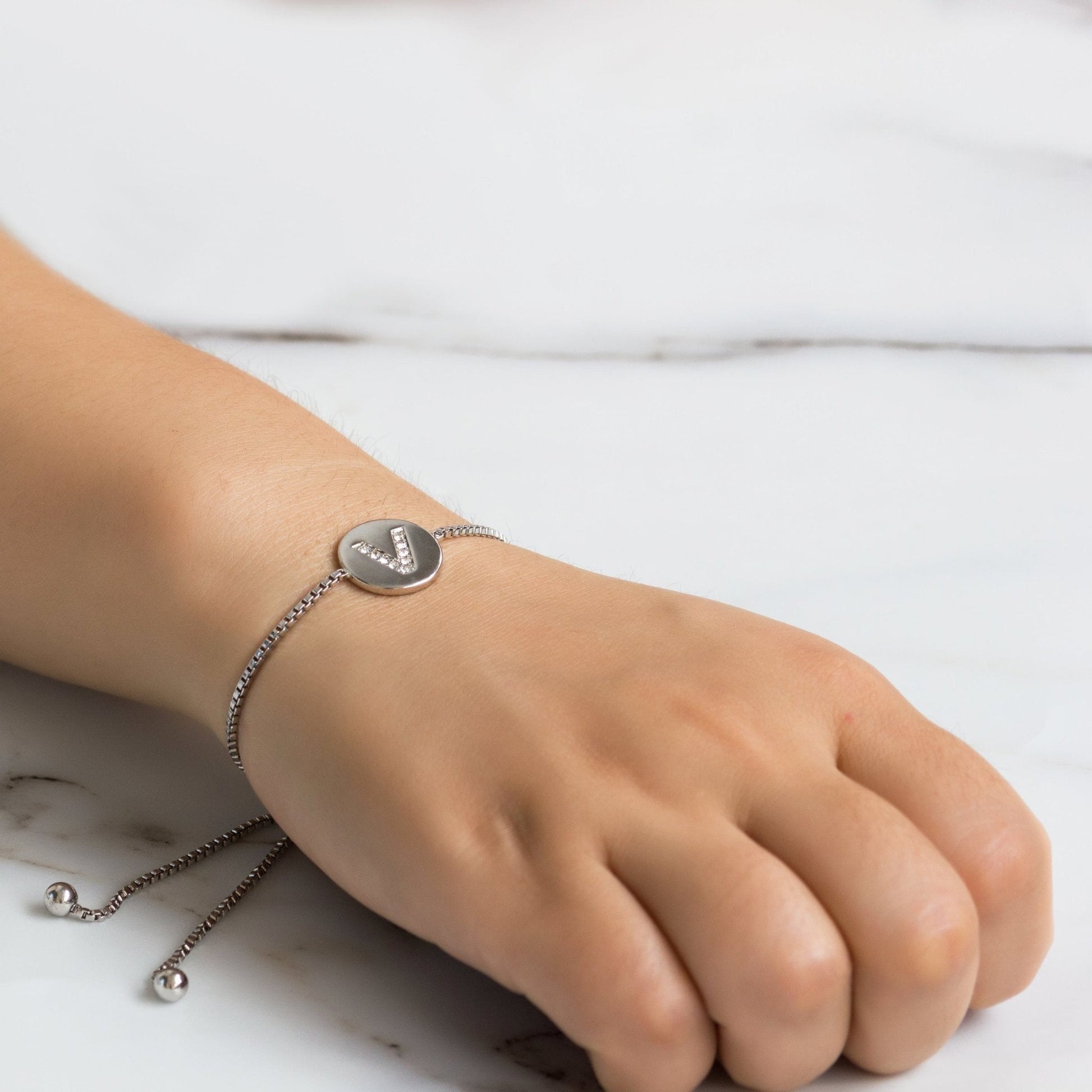 Initial Friendship Bracelet Letter V Created with Zircondia® Crystals