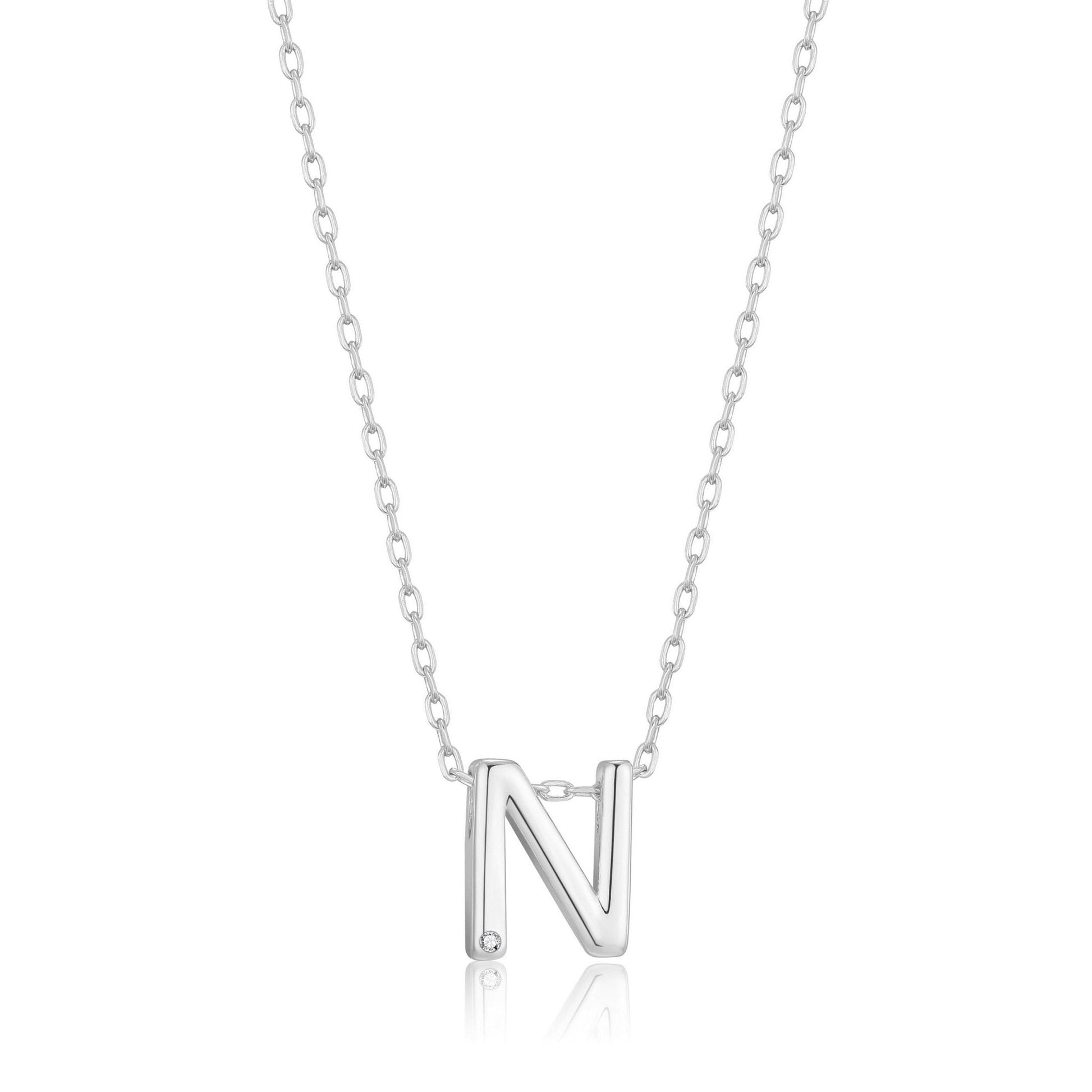 Initial Necklace Letter N Created with Zircondia® Crystals