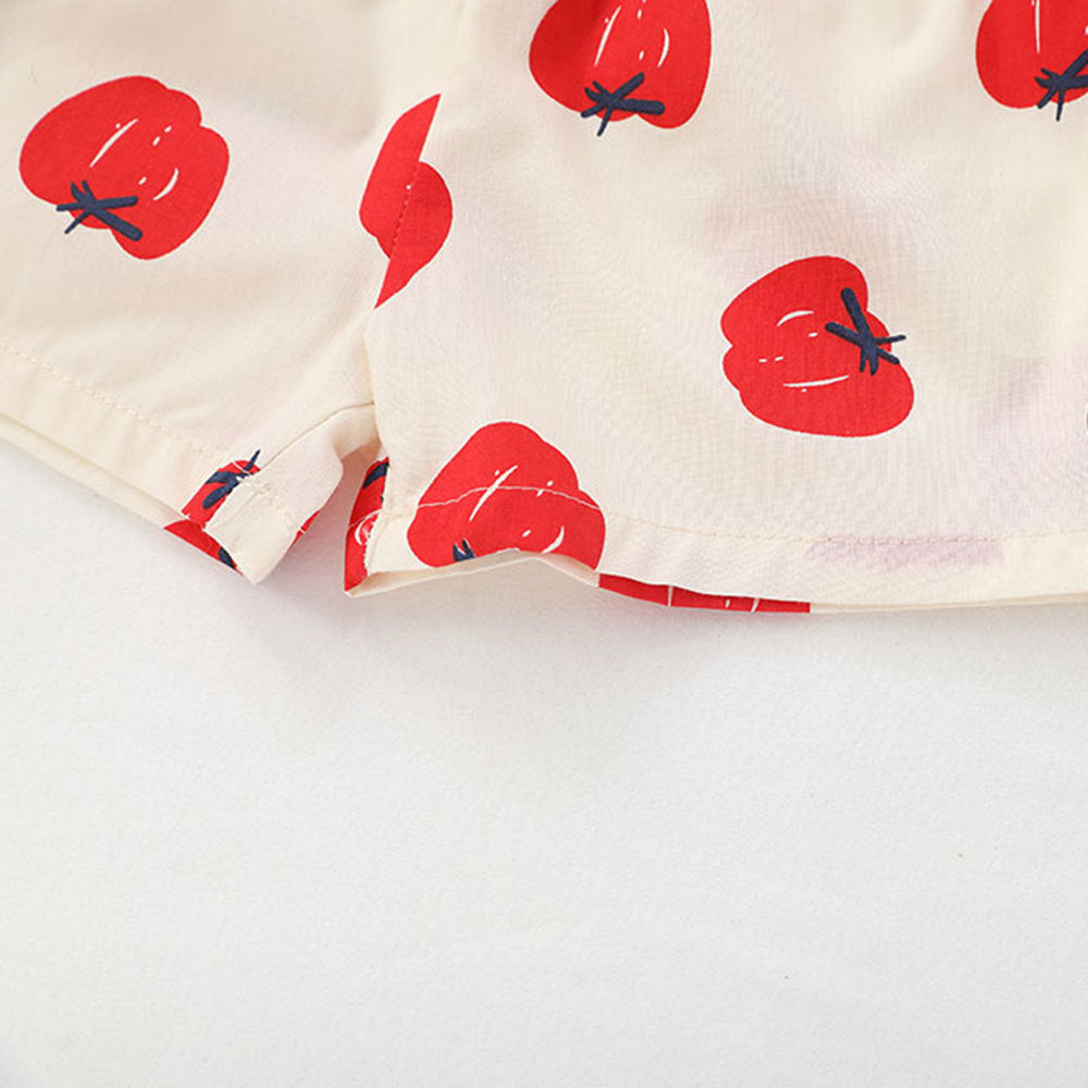 Color: pink apple, red flowers, red chilli, yellow pepper