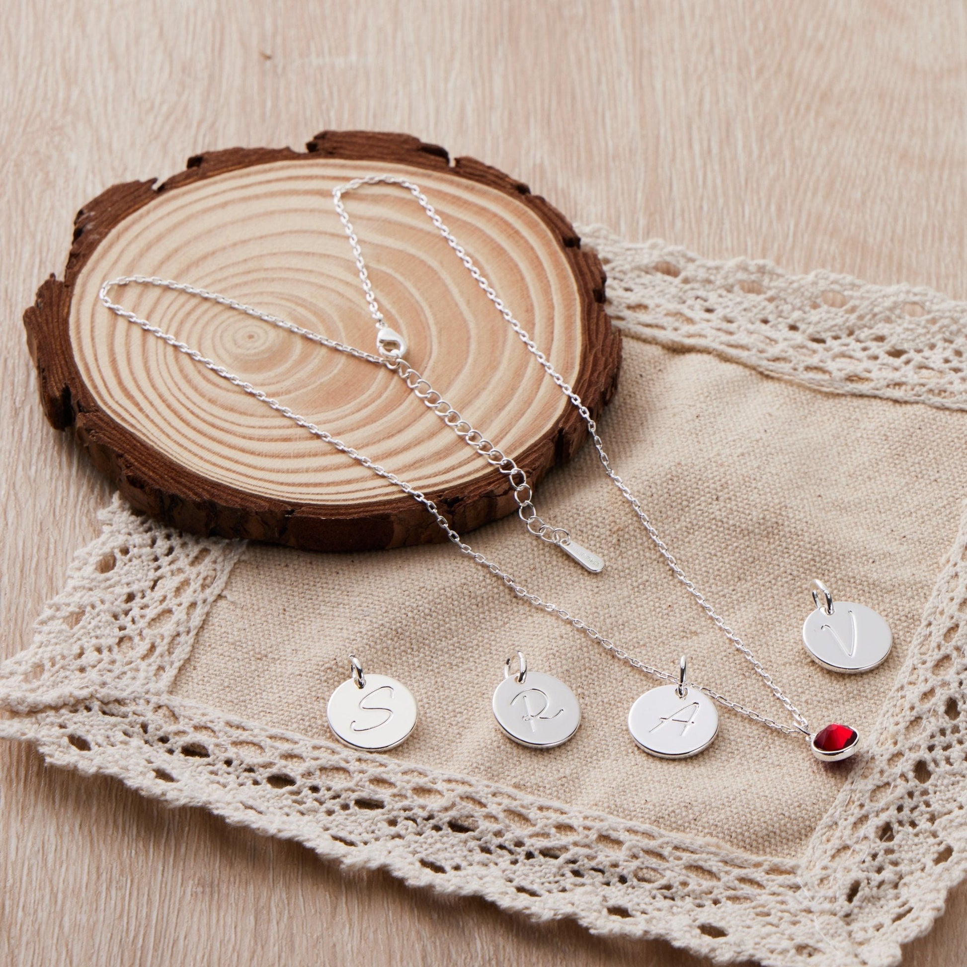 July (Ruby) Birthstone Necklace with Initial Charm (A to Z) Created with Zircondia® Crystals