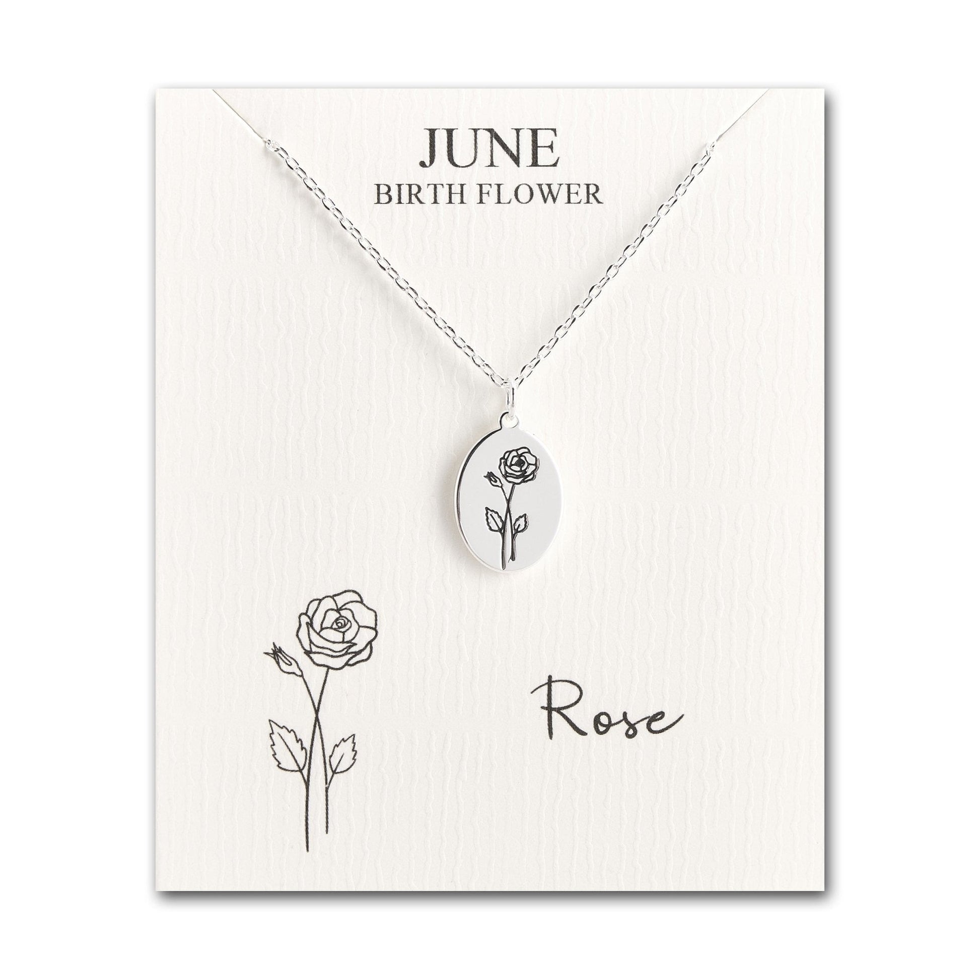 Celebrate June birthdays in style with our Rose Birth Flower Pendant Necklace. Crafted in silver plated brass with a high-polished, hypoallergenic finish, this elegant piece comes in a gift pouch with card. The perfect meaningful gift, ready to treasure.