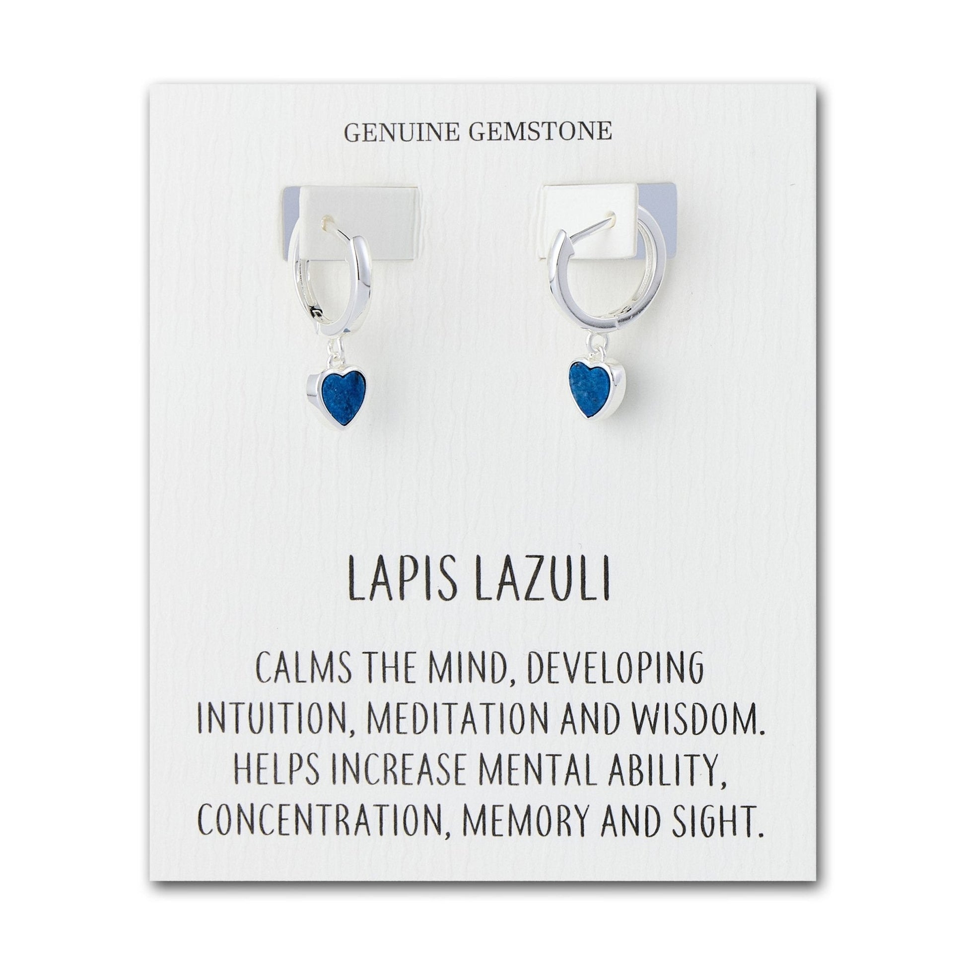 Lapis Gemstone Heart Charm Hoop Earrings with Quote Card