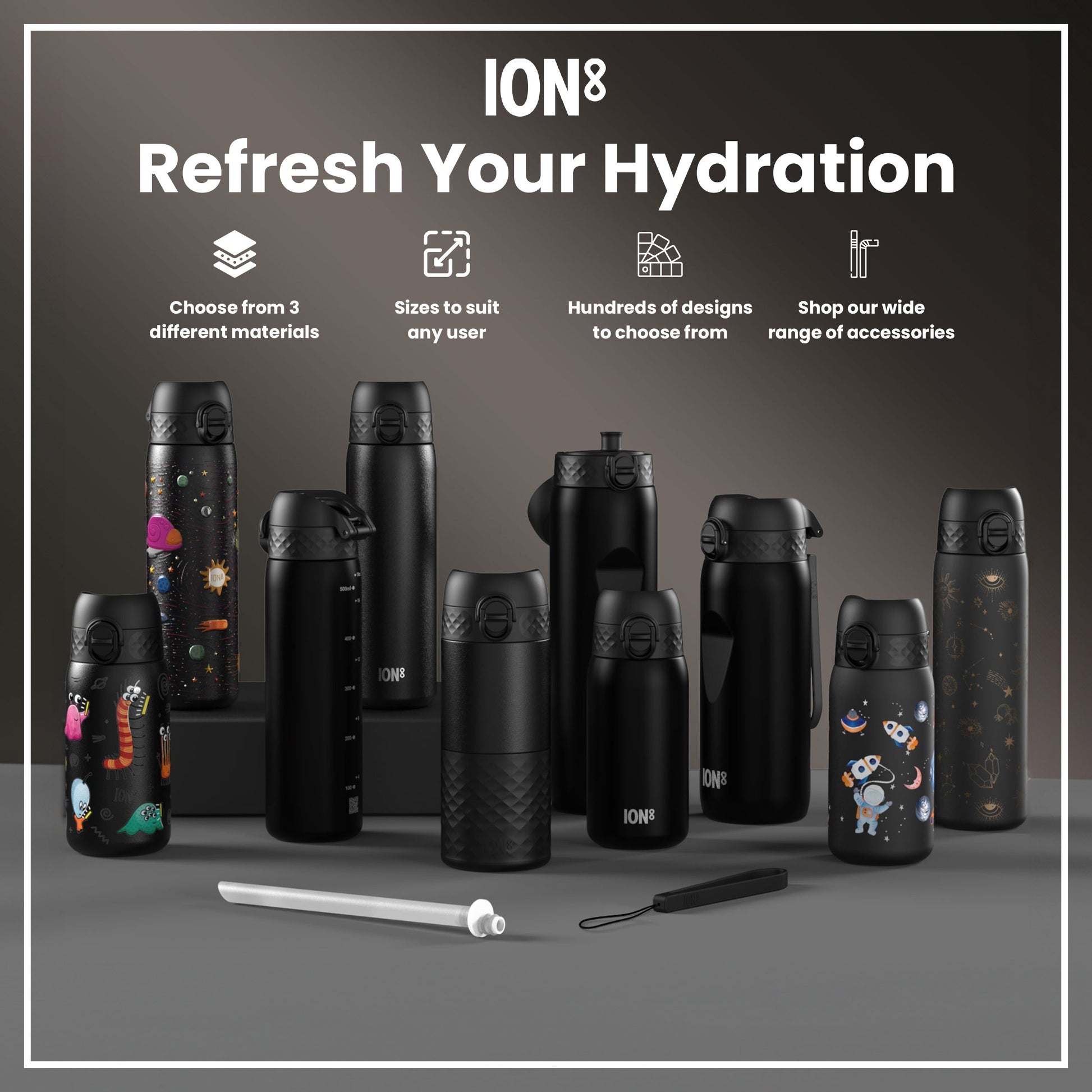 Leak Proof 1 Litre Water Bottle, Stainless Steel, Black, 1L