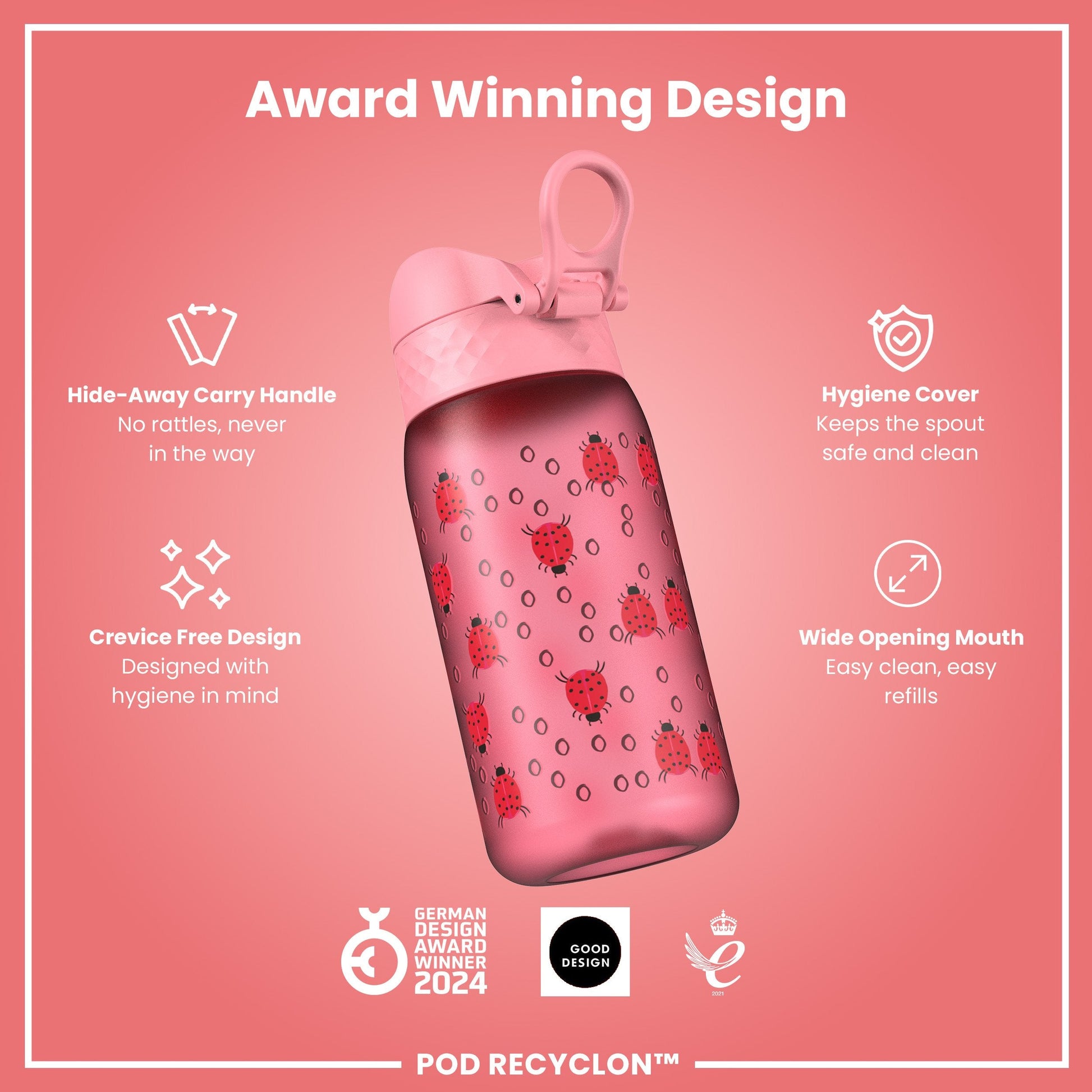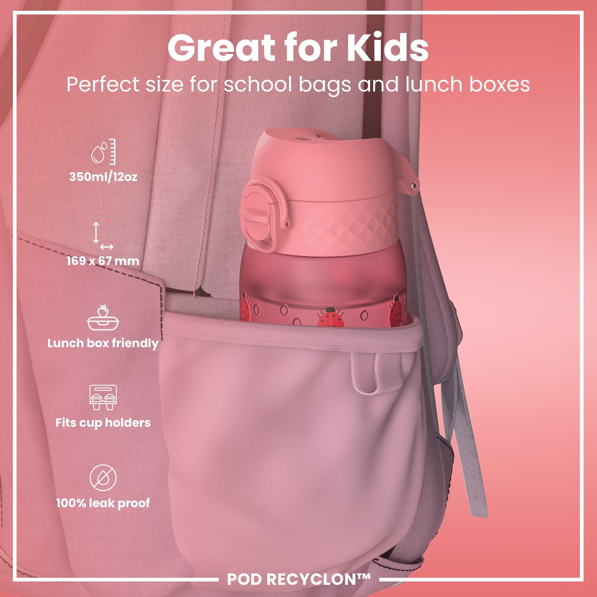 Leak Proof Kids' Water Bottle, Recyclon, Ladybugs, 350ml (12oz)