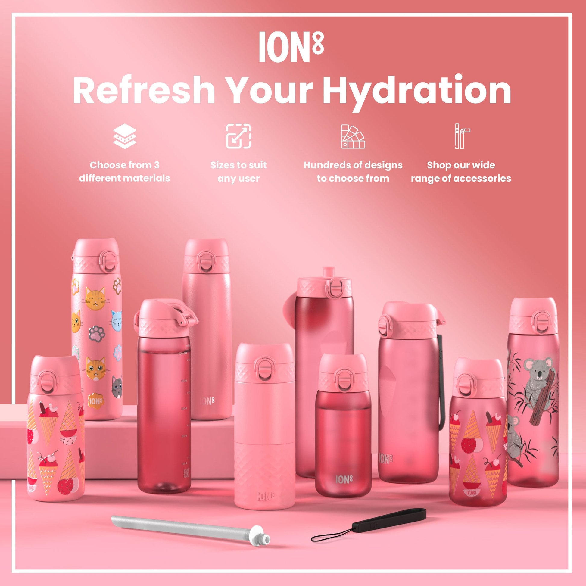 Made from Recyclon™, a transparent carbon neutral plastic partly made from plants. Reuse & refill responsibly. This pink water bottle is food safe, odour resistant, easy to wash, and keeps drinks fresh and full of flavour.