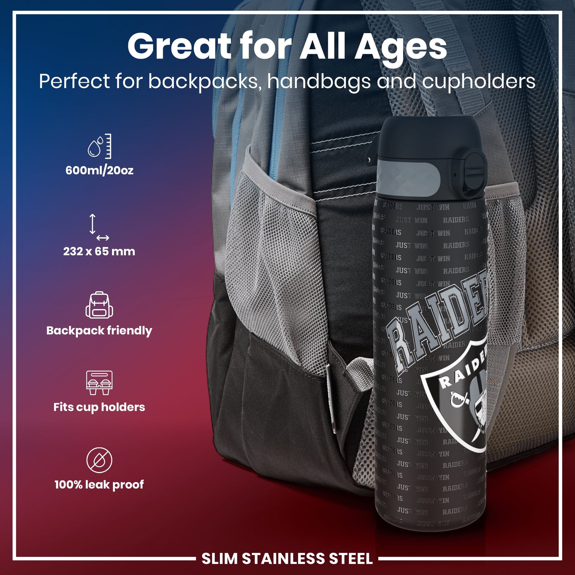 Leak Proof NFL Water Bottle, Stainless Steel, Las Vegas Raiders, 600ml (20oz)