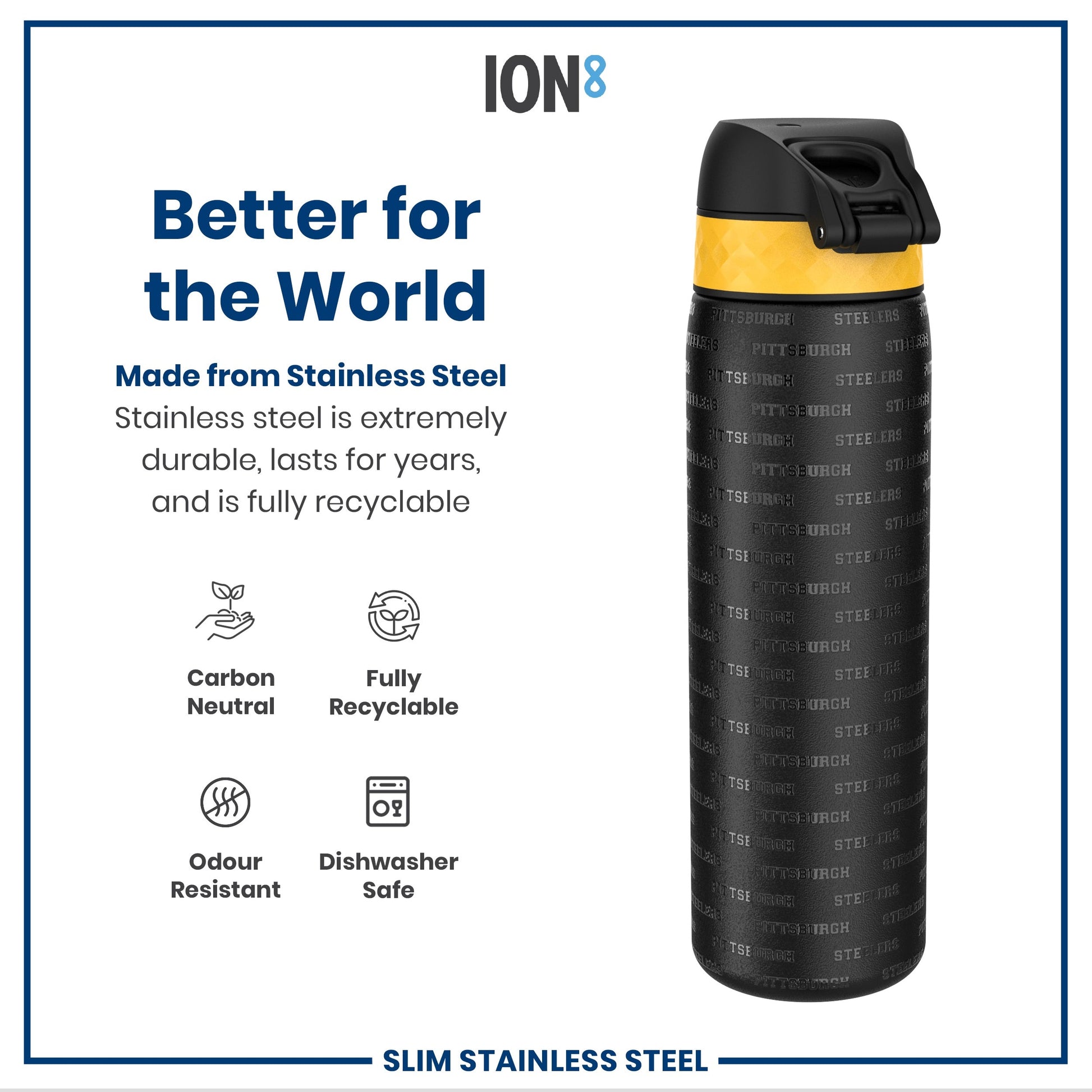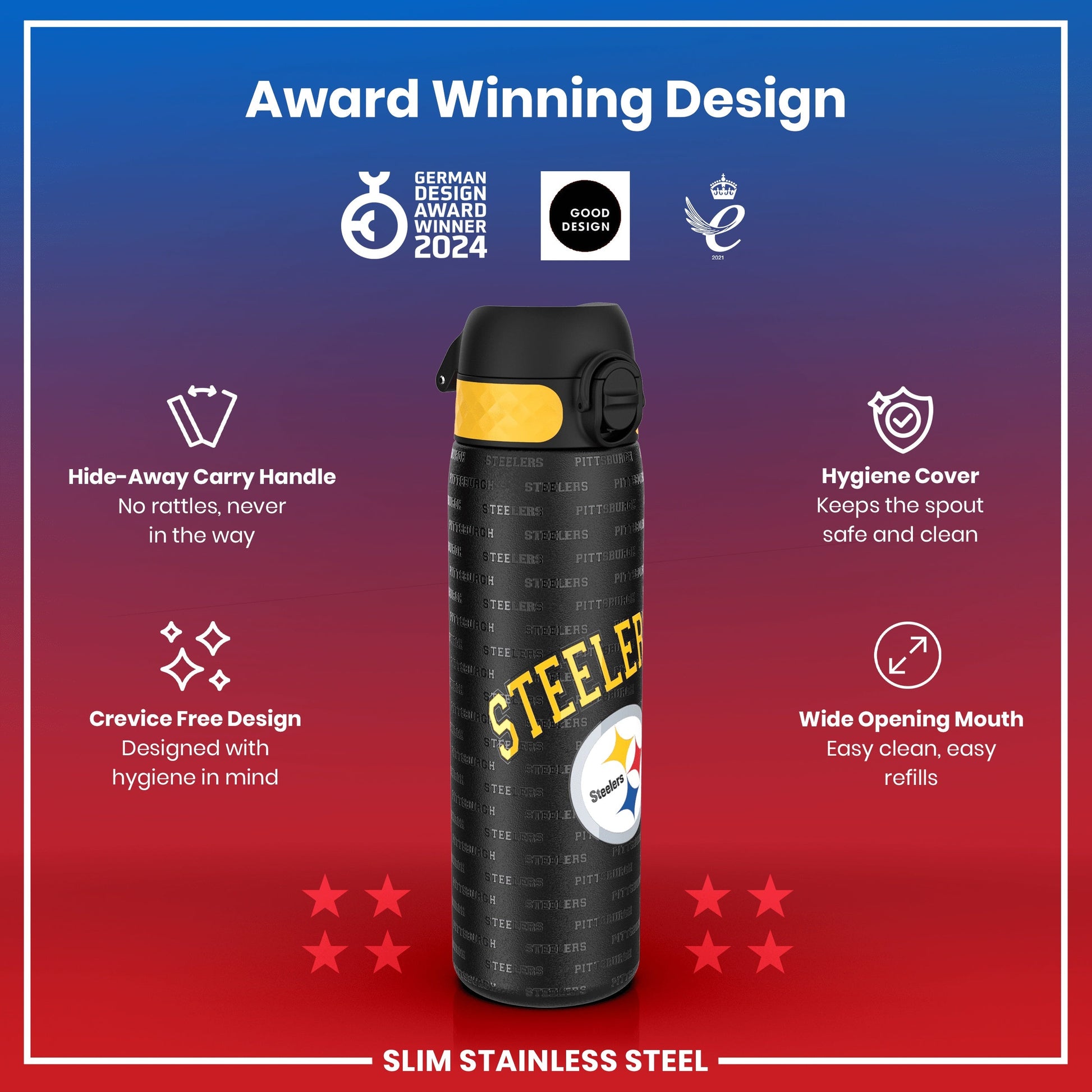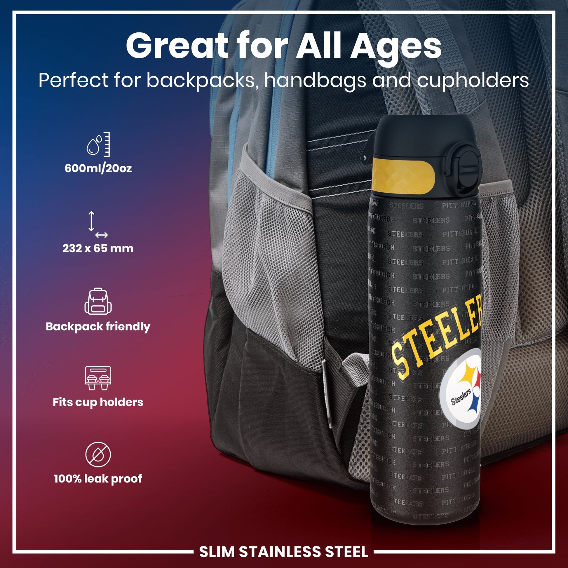 Leak Proof NFL Water Bottle, Stainless Steel, Pittsburgh Steelers, 600ml (20oz)