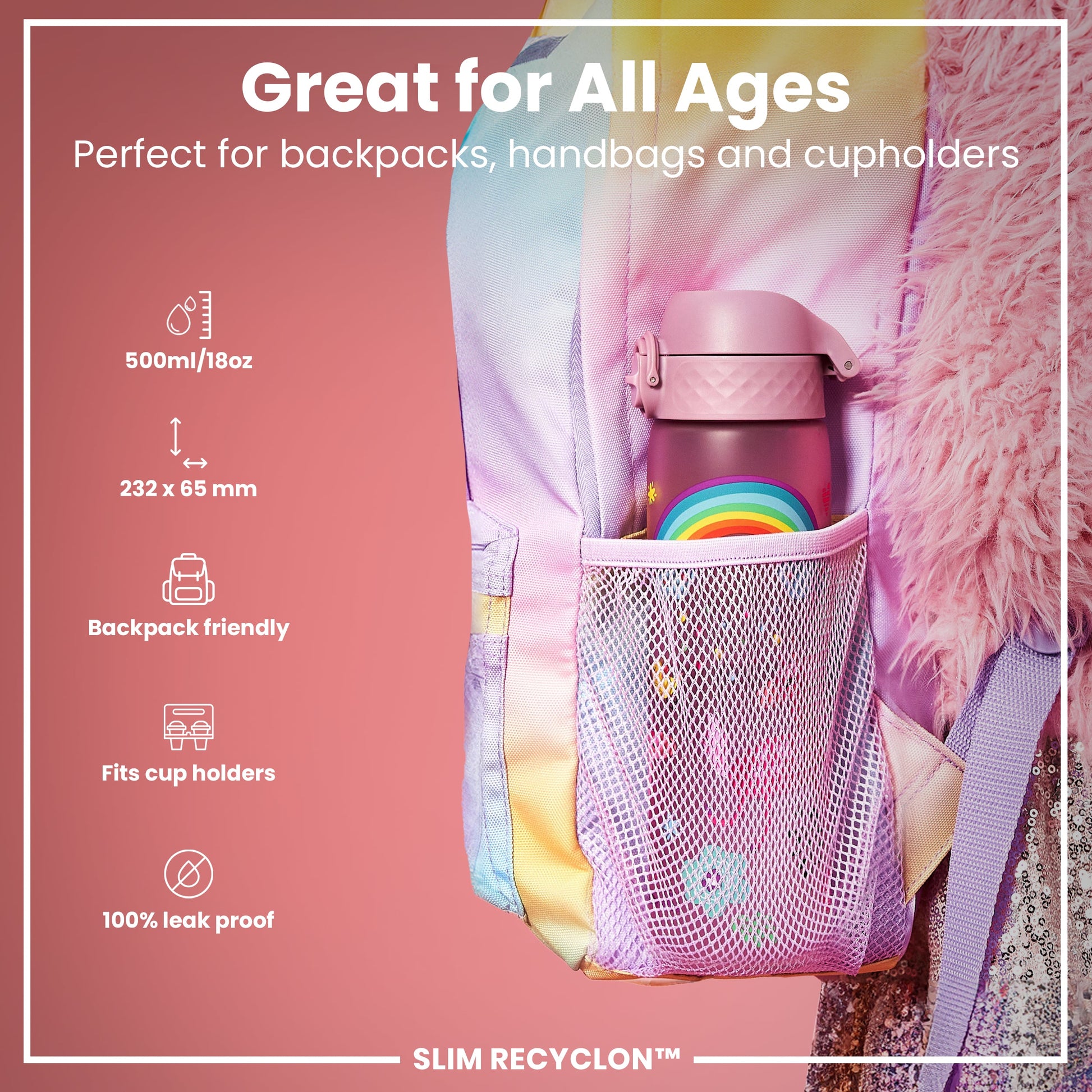 Leak Proof Slim Water Bottle, Recyclon, Unicorns, 500ml (18oz)