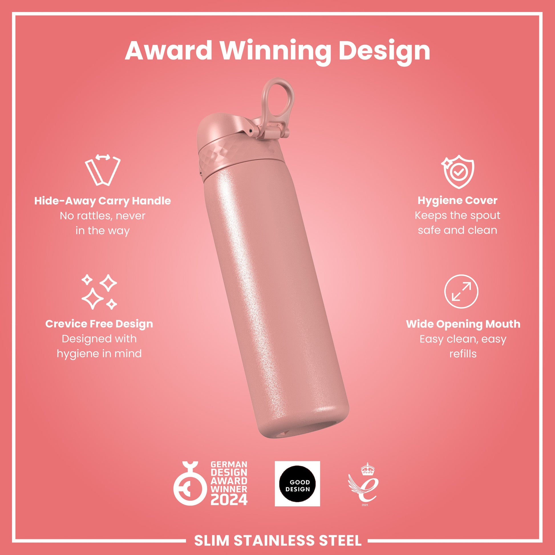 Ash Rose 600ml Leak-Proof Slim Water Bottle
