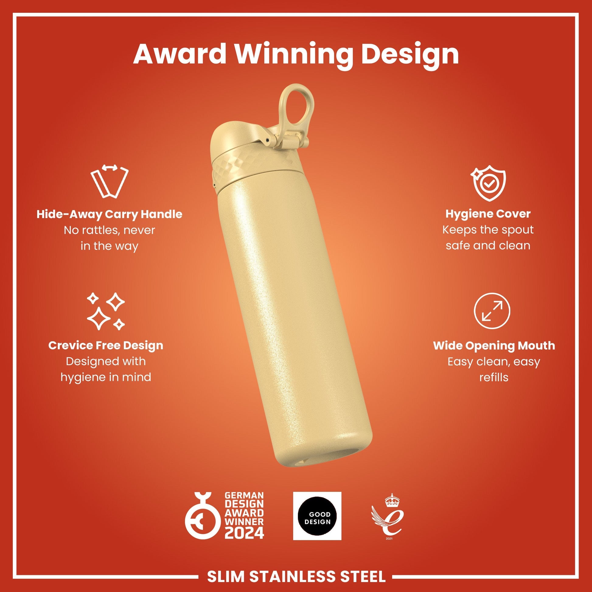 Leak Proof Slim Water Bottle, Stainless Steel, Desert, 600ml (20oz)