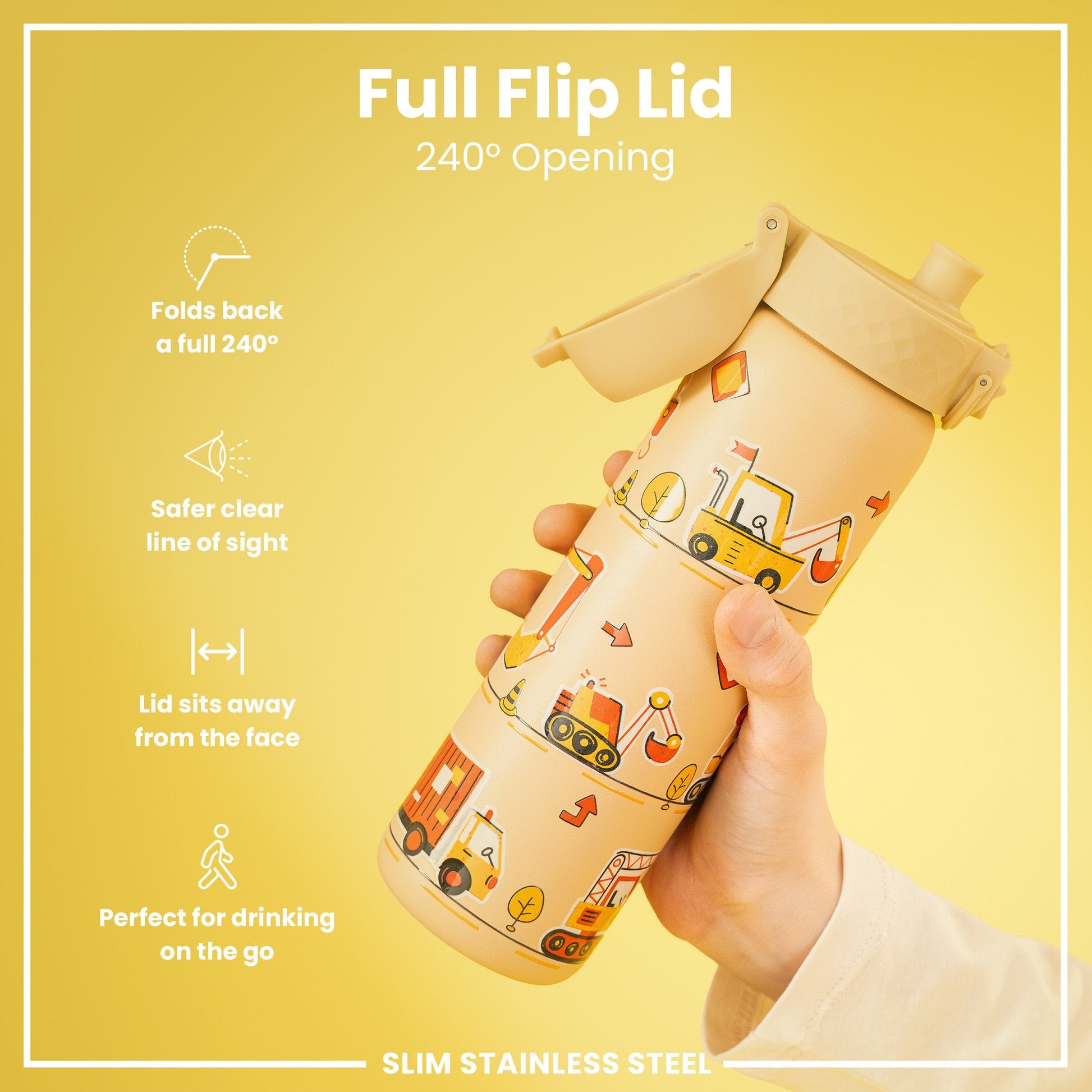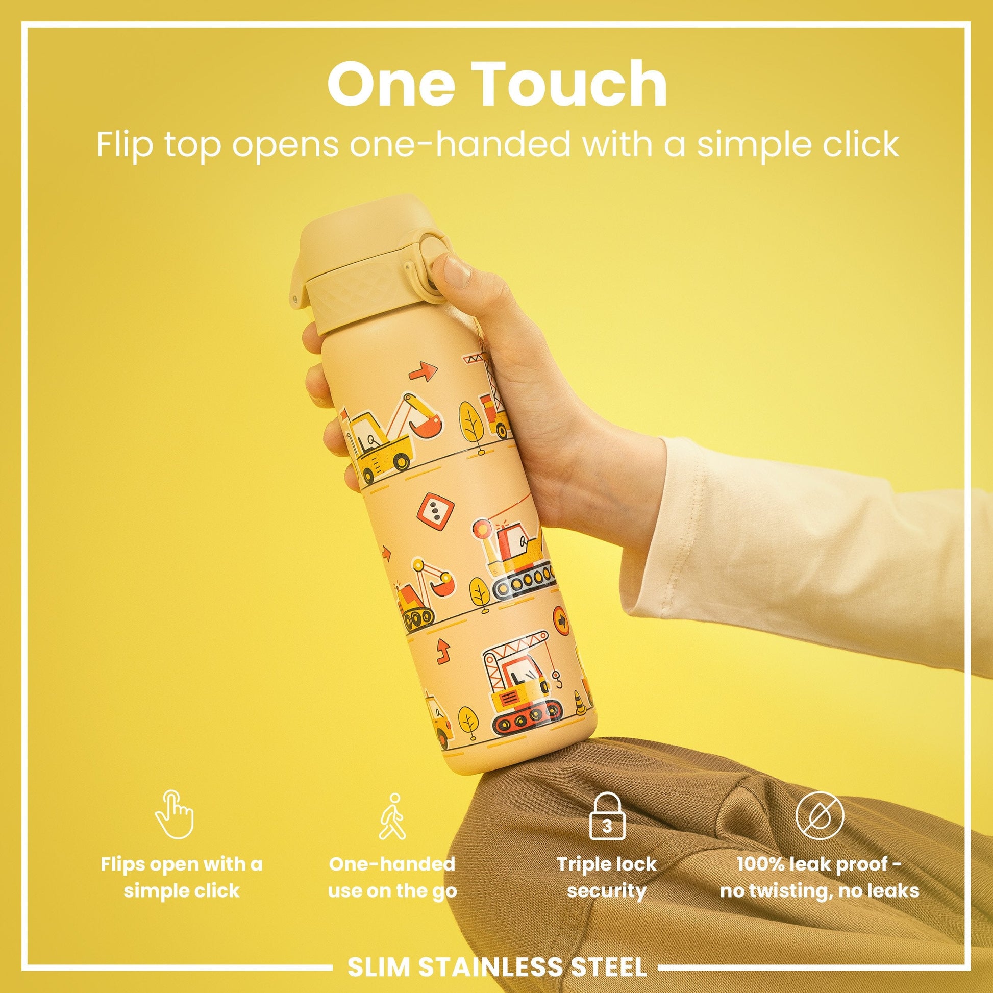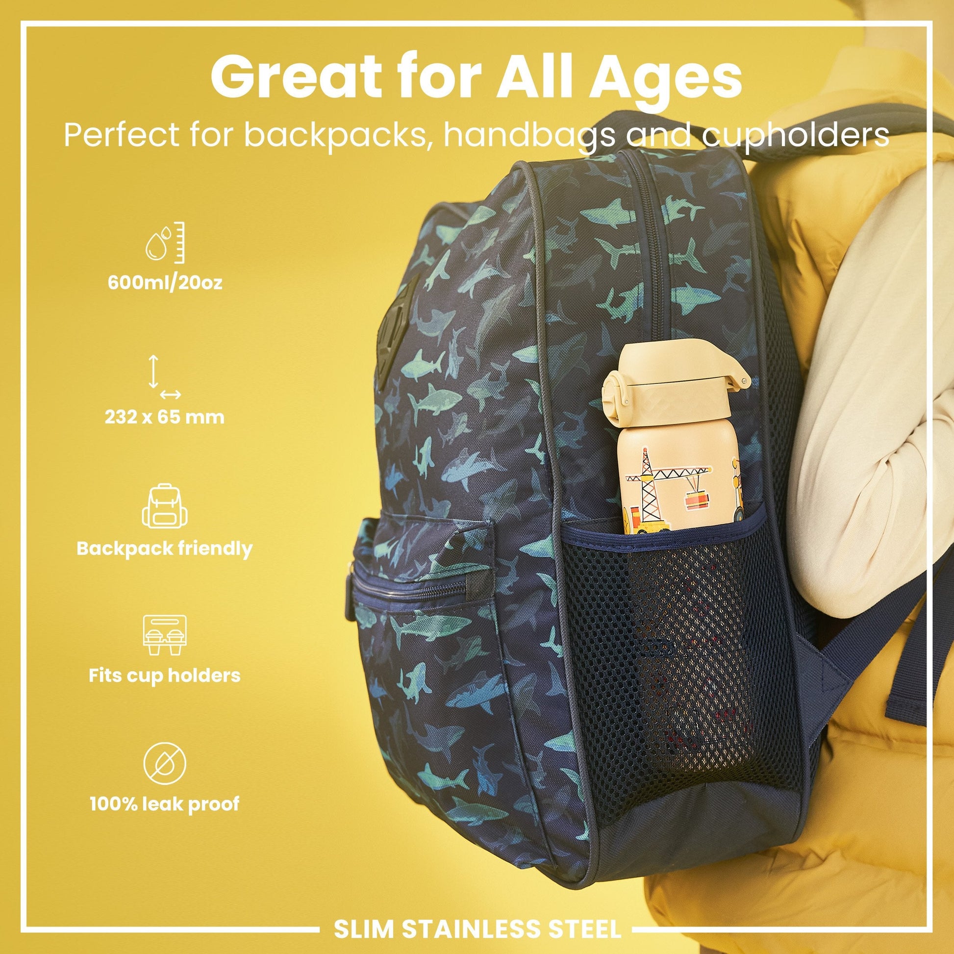 Leak Proof Slim Water Bottle, Stainless Steel, Diggers, 600ml (20oz)