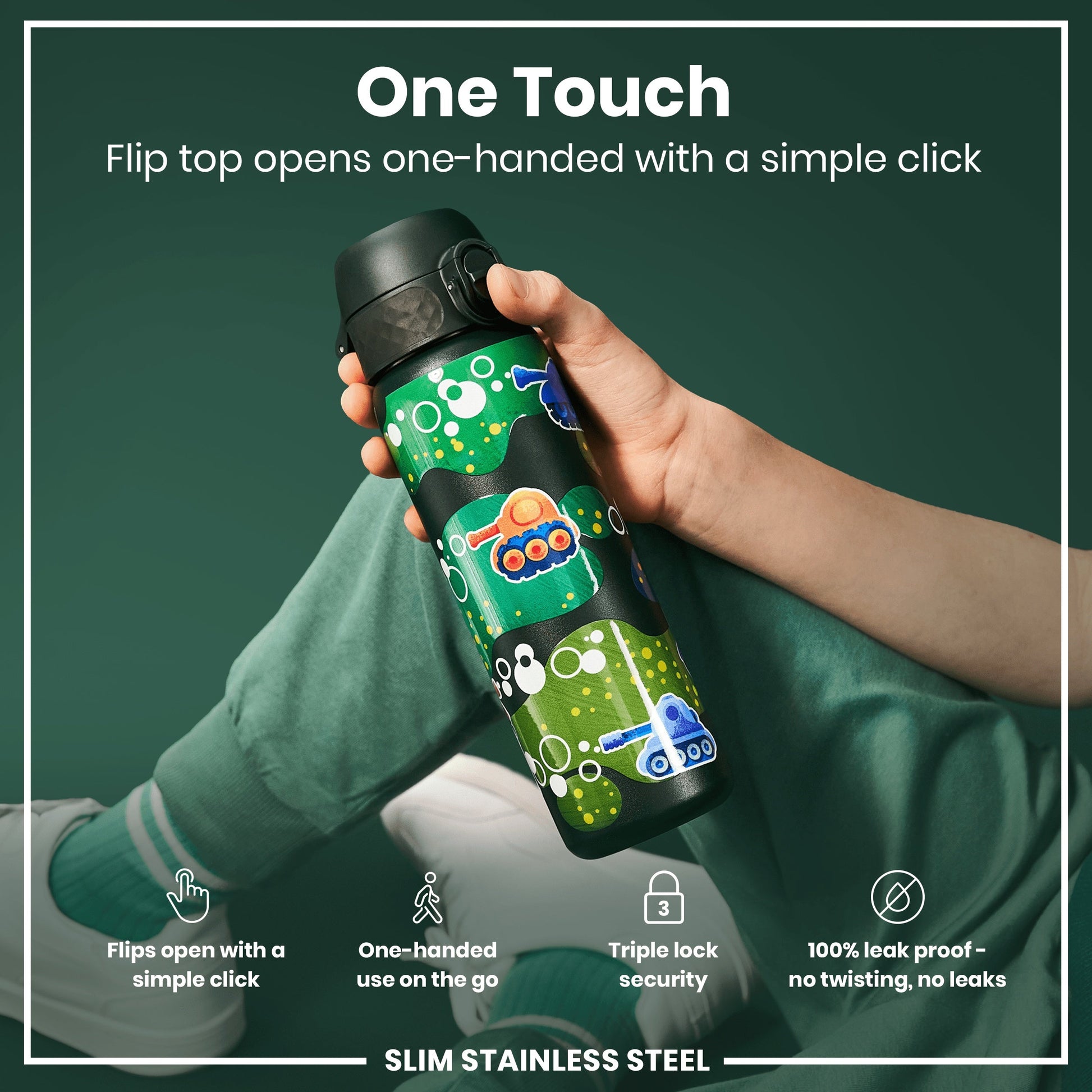 Leak Proof Slim Water Bottle, Stainless Steel, Tanks, 600ml (20oz)