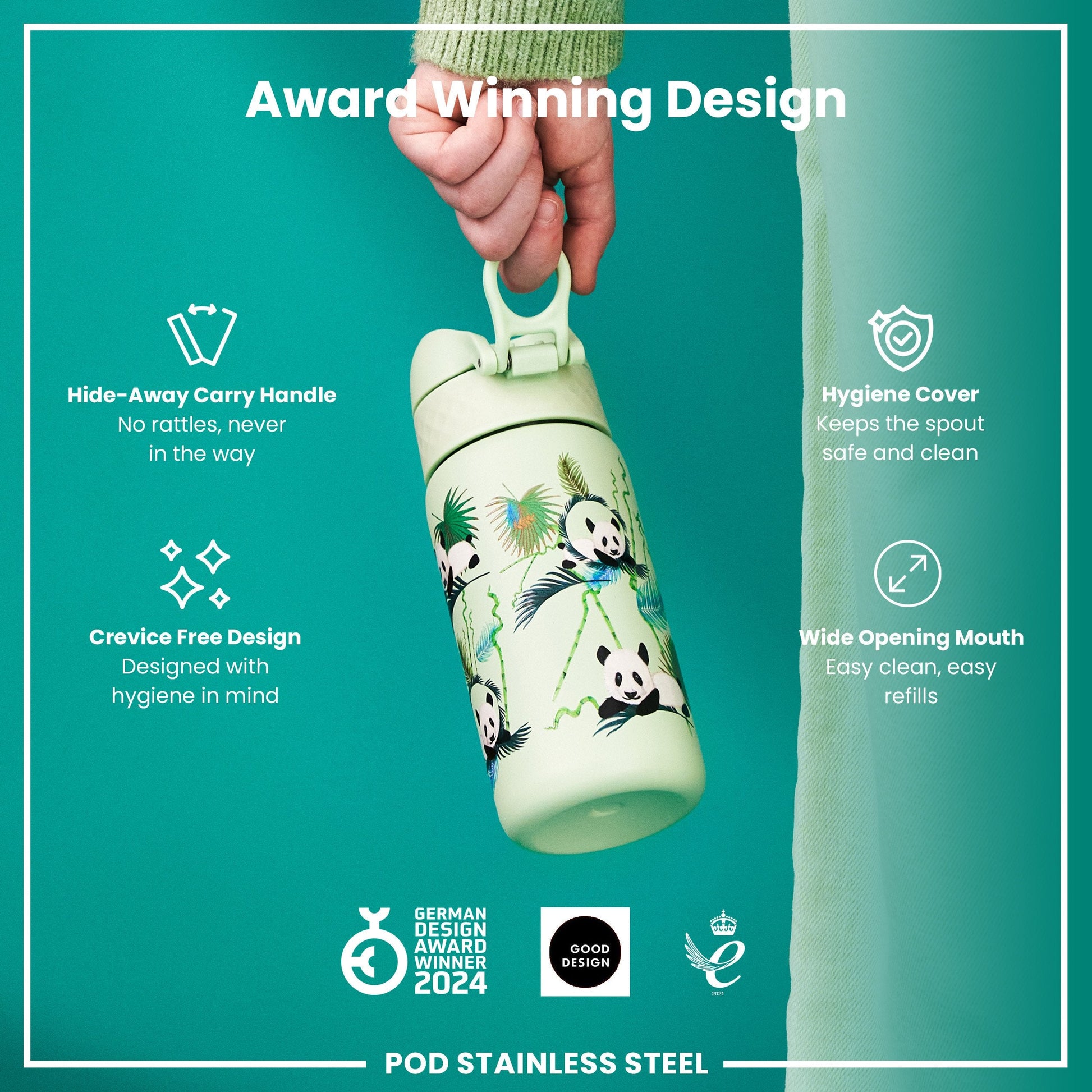 Leak Proof Thermal Steel Water Bottle, Insulated, Pandas, 320ml (11oz)