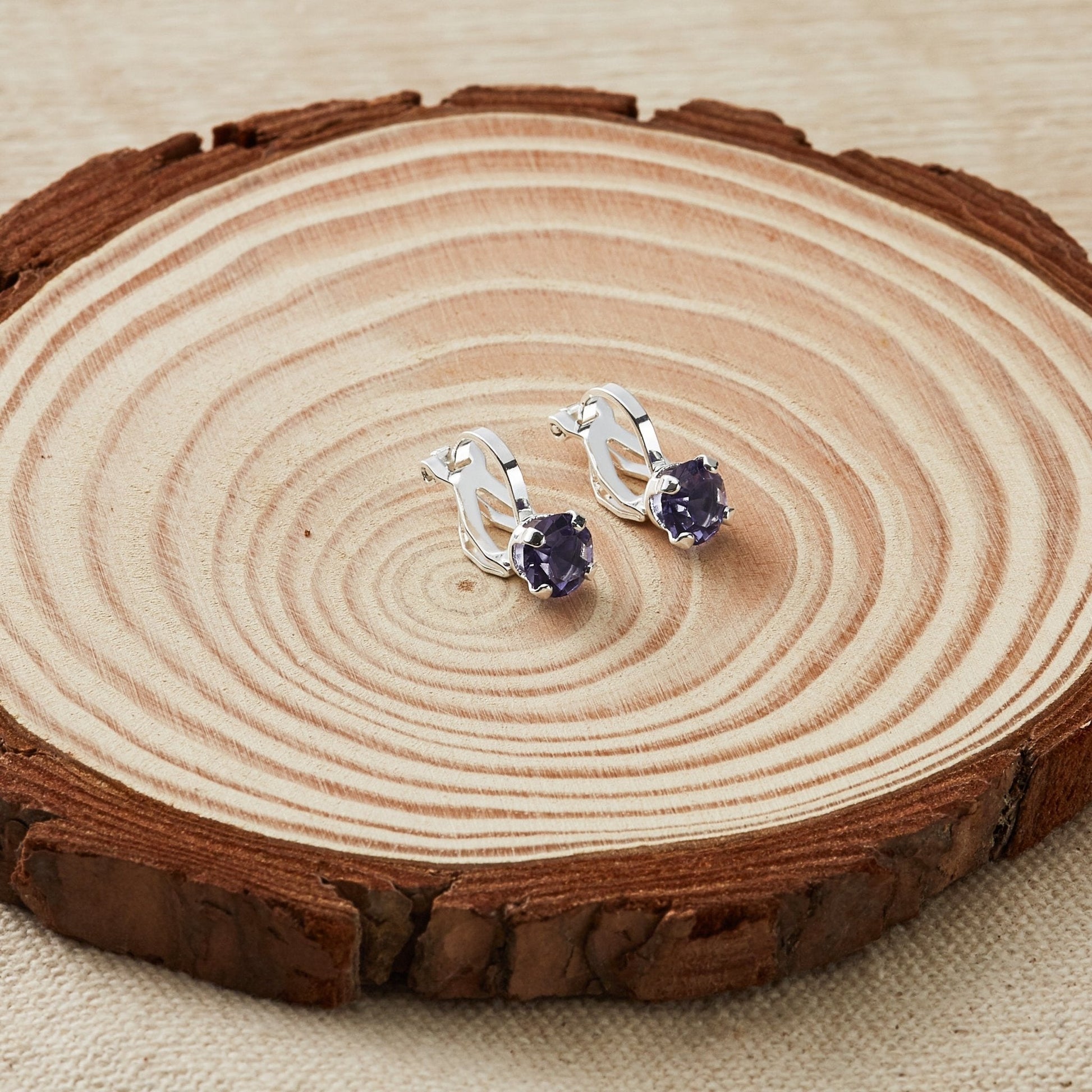 Glimmering with Zircondia® Crystals, these hypoallergenic silver-plated clip-on earrings make an exquisite gift. Philip Jones signature craftsmanship, brass alloy base with a 4-prong setting, 6mm round crystals in a dazzling light purple hue. Dimensions: 16mm (H) x 8mm (W). Comes in a 8.5cm x 9.5cm gift pouch. 2 pieces included.