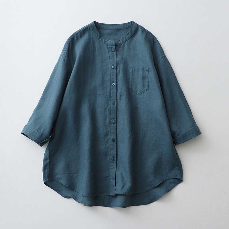 Linen Shirt Stand-up Collar White Shirt Women's Clothing