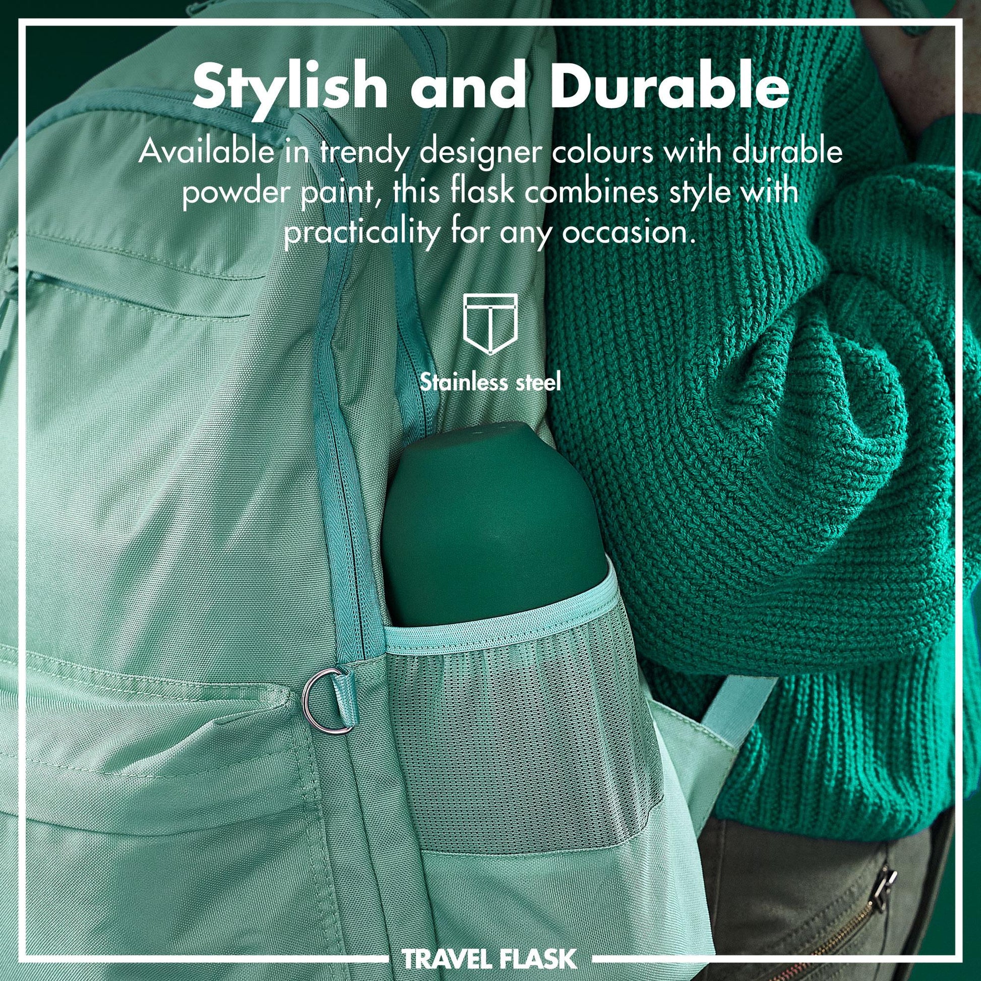 Available in fashionable designer colors with tough powder paint for durability and grip, our flask is as stylish as it is functional. Plus, it’s 100% carbon neutral and made from recyclable vacuum insulated stainless steel, making it an environmentally friendly choice. Enjoy your beverages in style and sustainability with our premium ION8 Vacuum Insulated Flask for Hot Drinks with Cup.